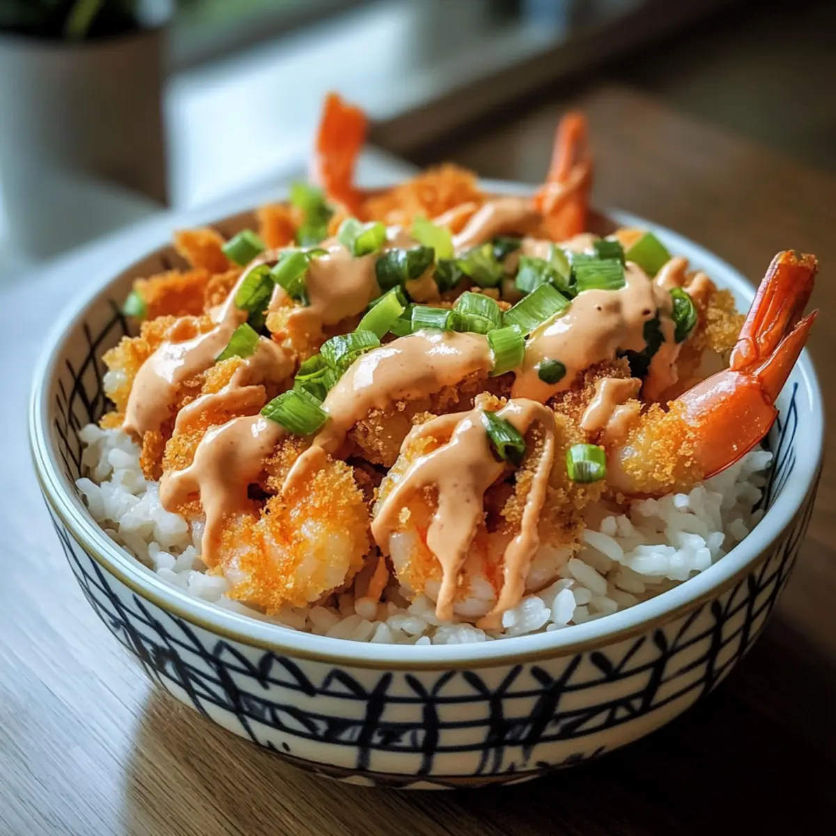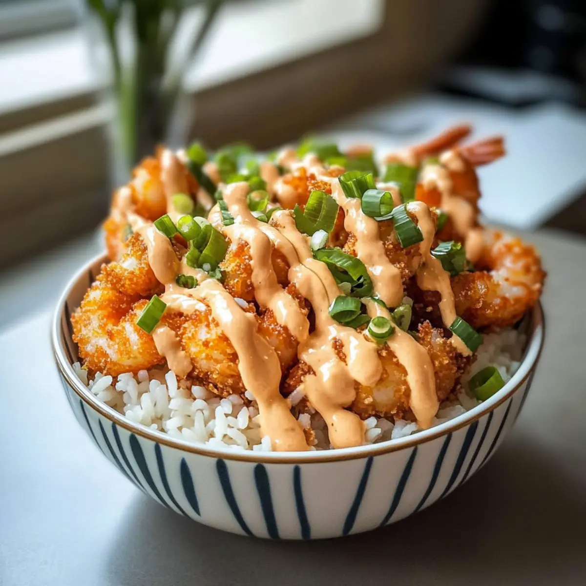 Frisch servieren: Genießen Sie die Bang Bang Garnelen Reis Schüssel sofort nach dem Anrichten, um die Knusprigkeit der Garnelen zu bewahren und den vollen Geschmack zu genießen.
