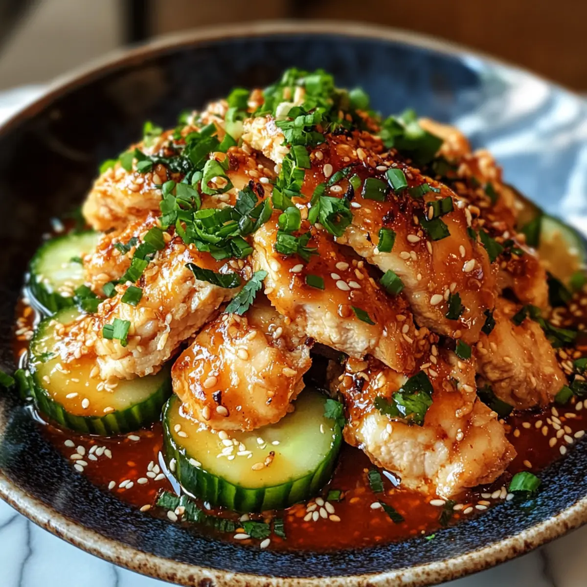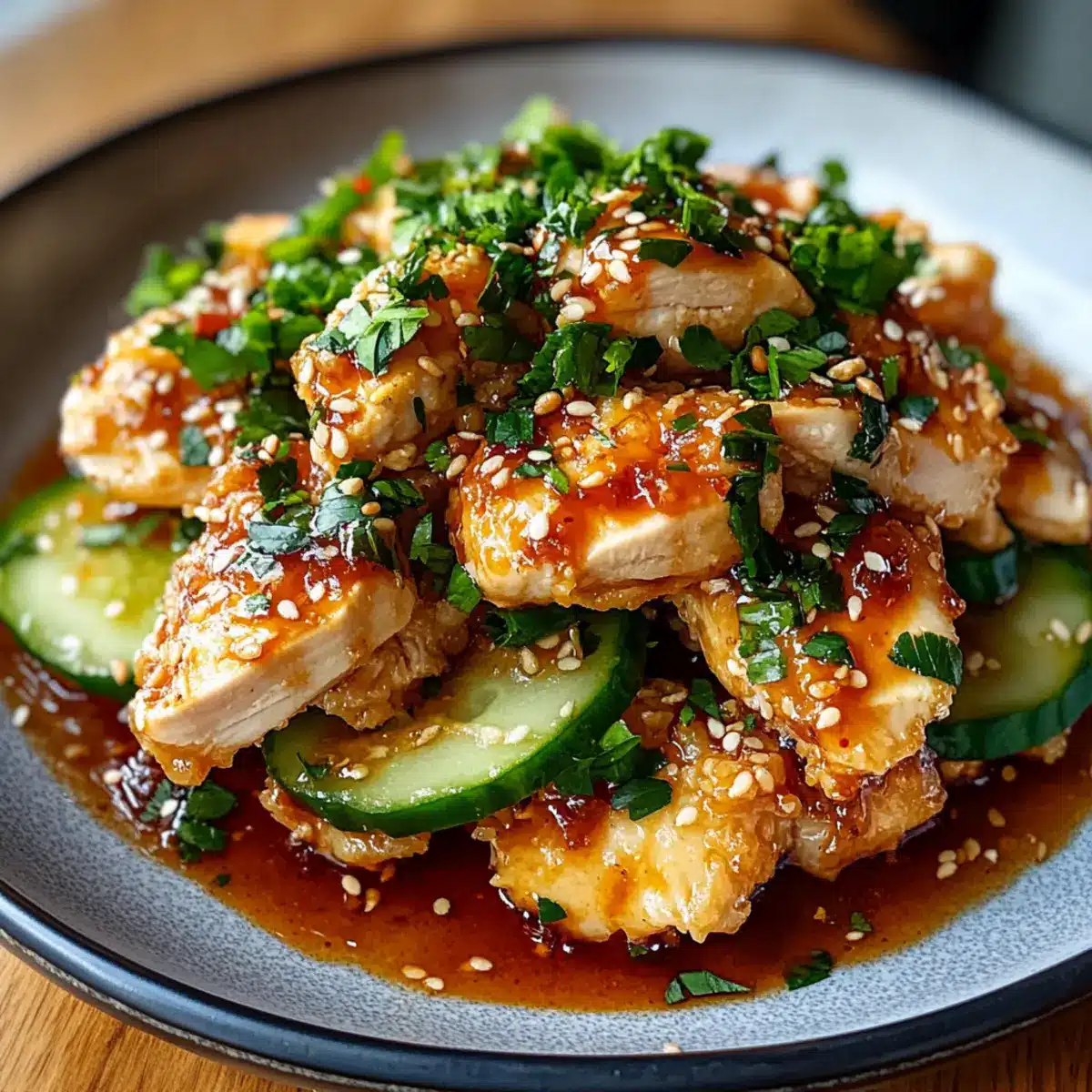 Frische Aromen, Die Kombination aus zartem Huhn und knuspriger Gurke sorgt für ein Geschmackserlebnis, das zum Verweilen einlädt.