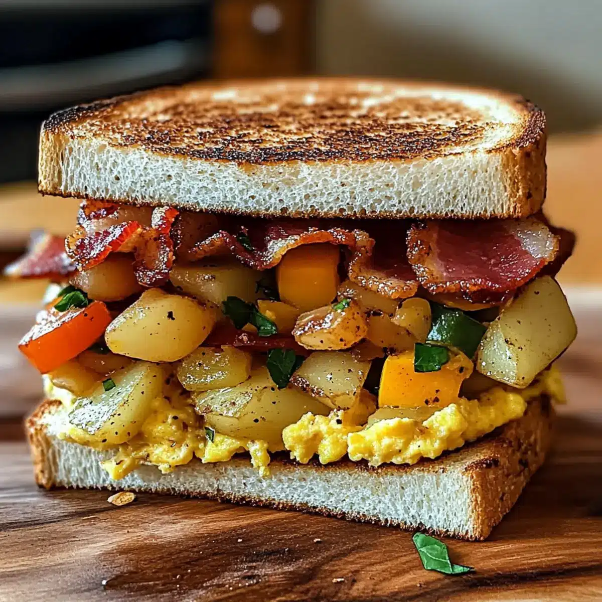 Gleichmäßige Stücke: Stelle sicher, dass Kartoffeln und Gemüse gleichmäßig geschnitten sind, um ein gleichmäßiges Garen und eine ansprechende Textur im Bauernfrühstücks-Sandwich zu gewährleisten.