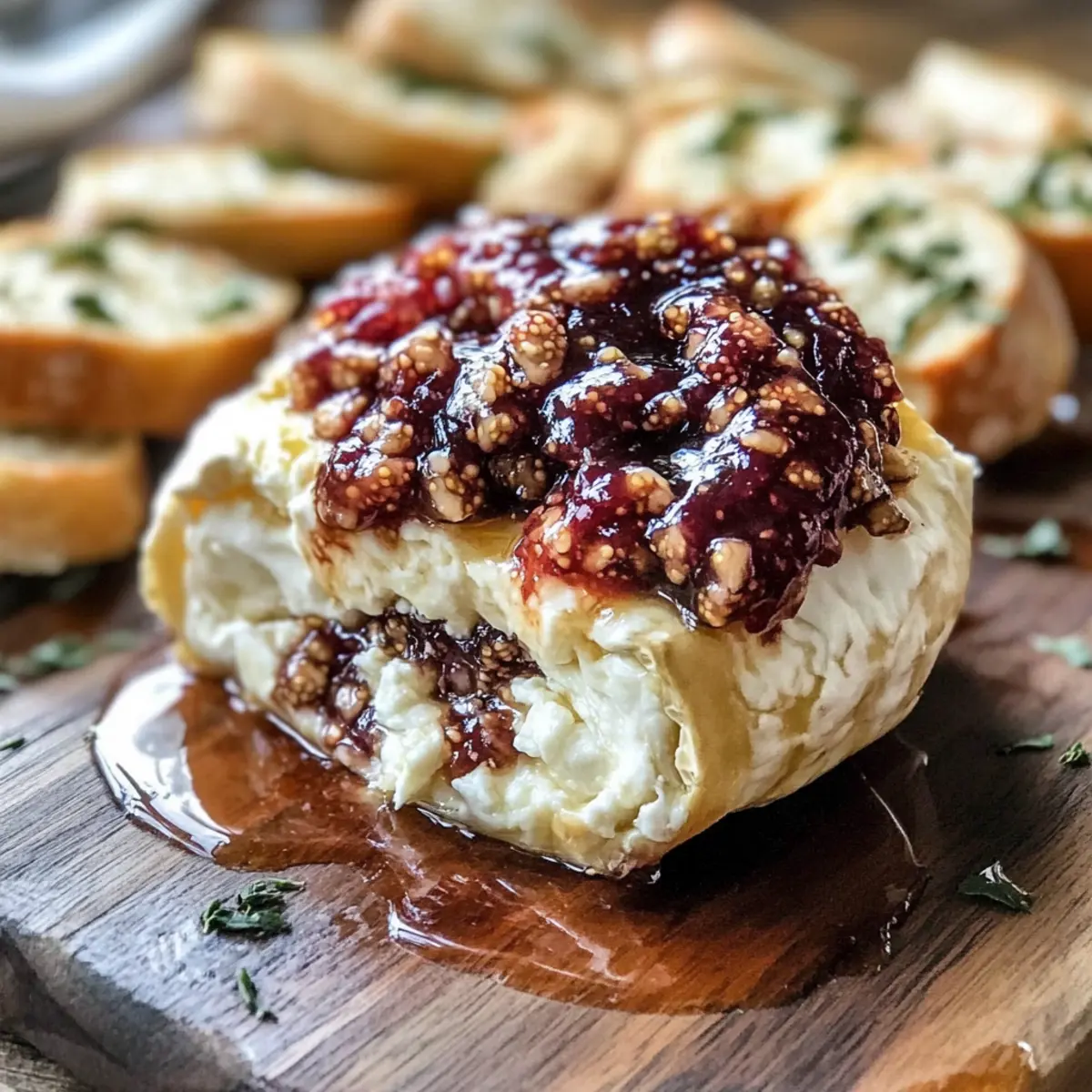 Überbackener Brie mit Preiselbeeren und Feigenmarmelade
