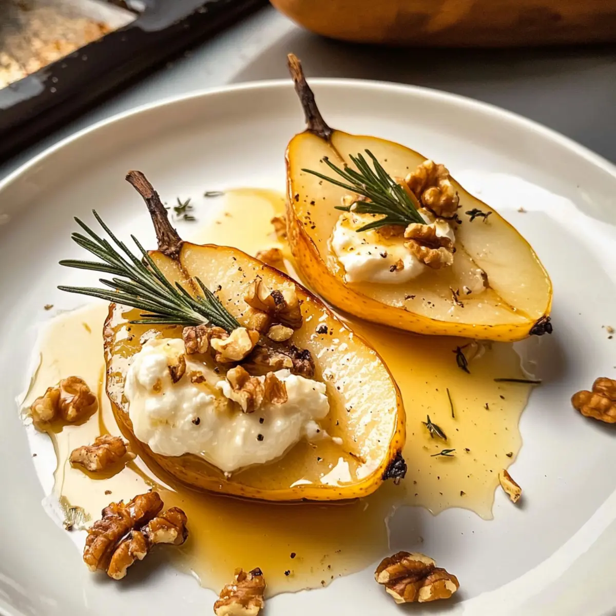Gebackene Birne mit Ziegenkäse und Honiggenuss