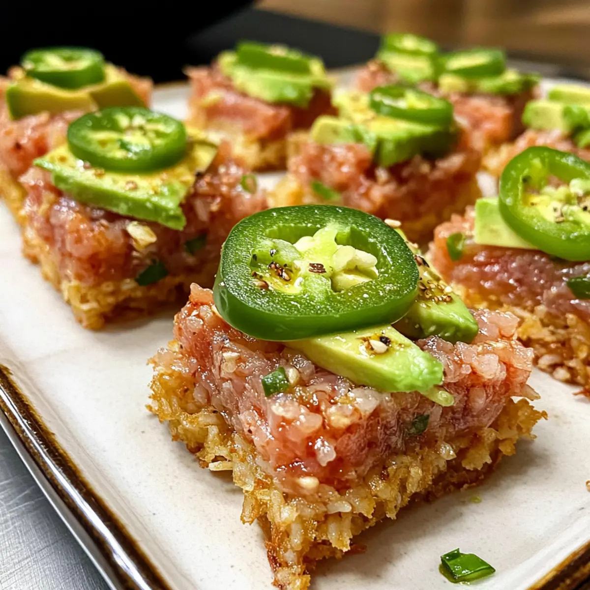 Scharfer Thunfisch auf knusprigem Reis genießen