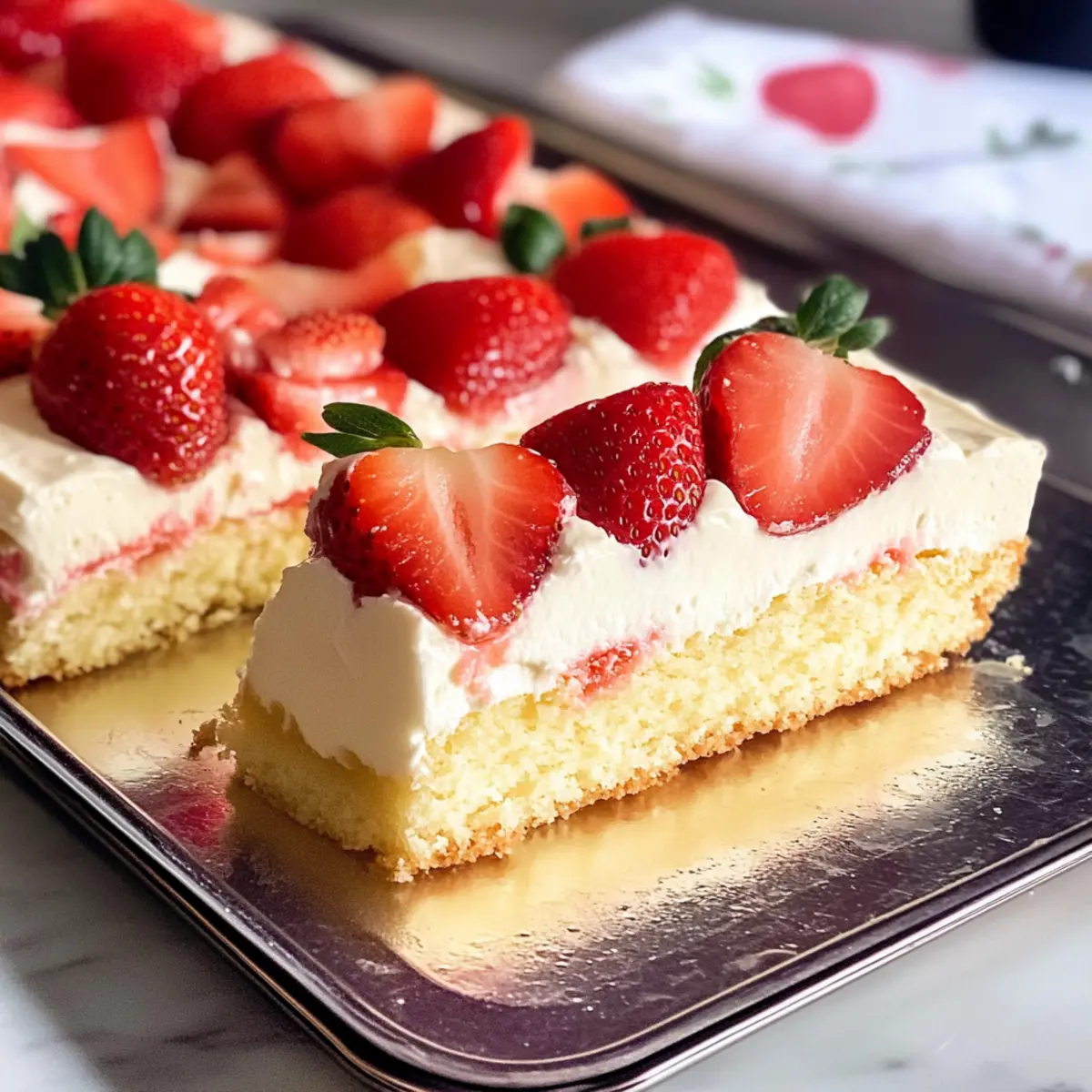 Erdbeerkuchen vom Blech mit Schmand und Pudding