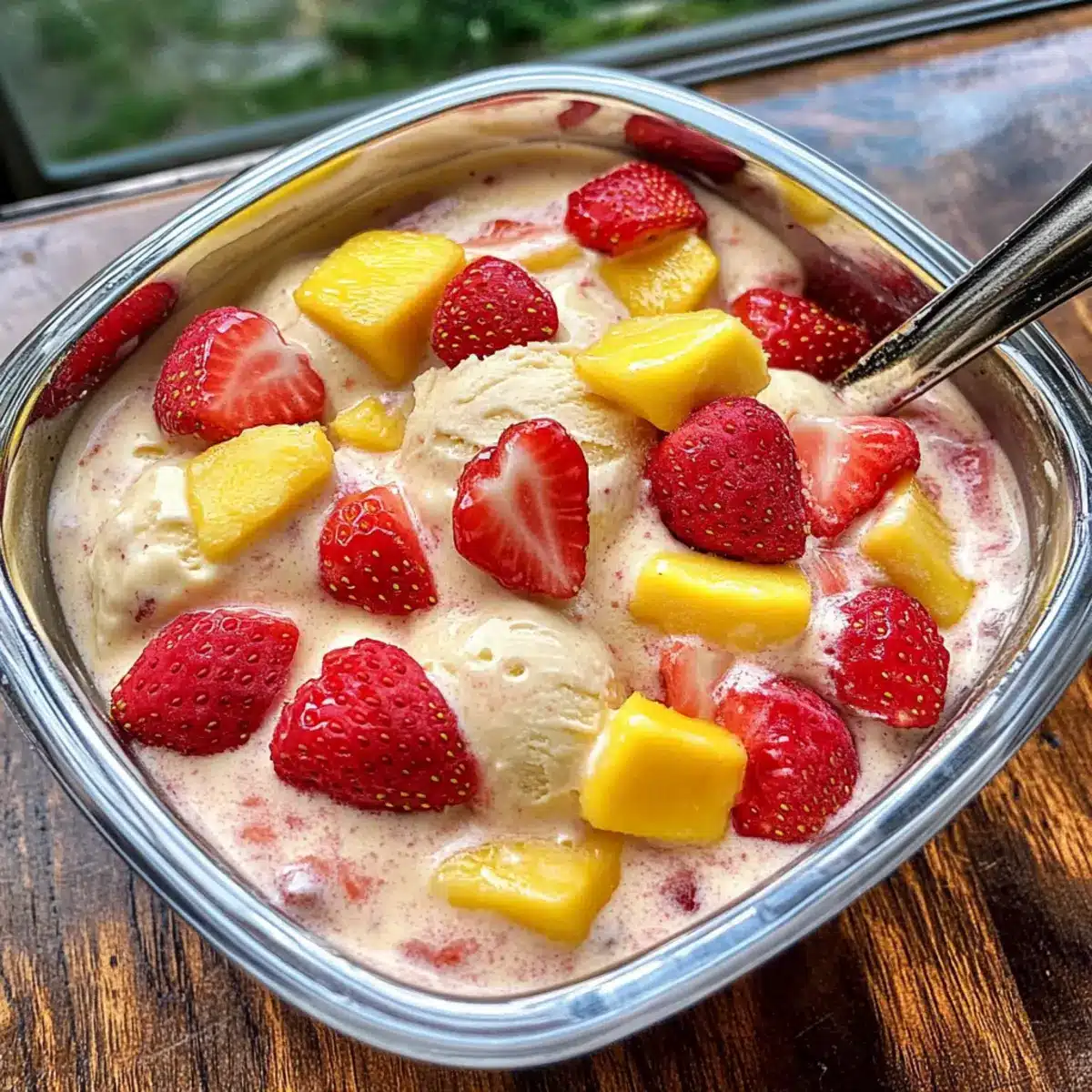 Buttermilch-Eis mit Erdbeeren und Mango selbstgemacht