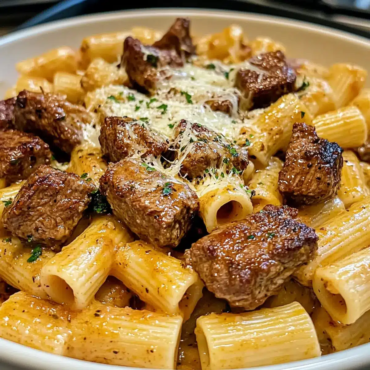 Cajun Steak Tipps in cremiger Käse Rigatoni Soße