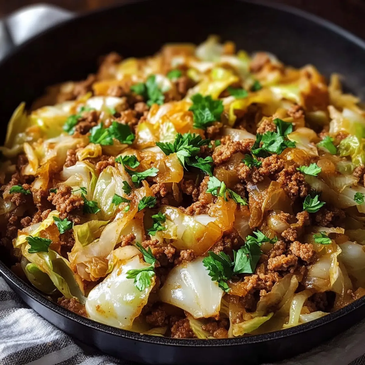 Kohl und Hackfleisch Pfannengericht für die Familie