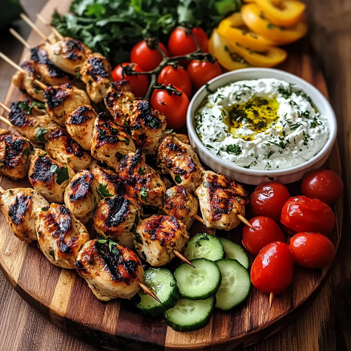 Griechische Hähnchen-Souvlaki-Platte mit Feta-Dip