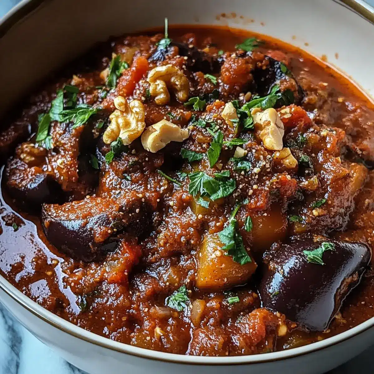 Gewürzter Auberginen- und Walnuss-Eintopf für Genießer