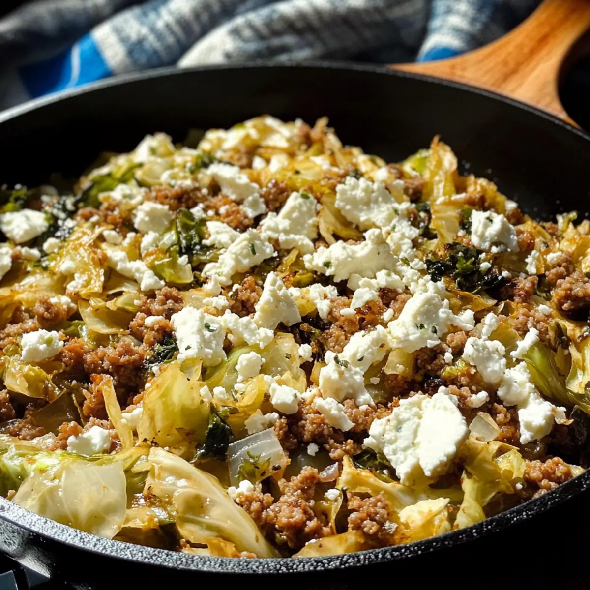 Spitzkohl-Hackfleisch-Pfanne mit Schafskäse genießen