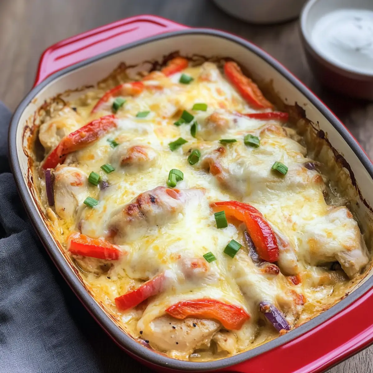 Hühnchenauflauf mit Paprika und cremiger Soße