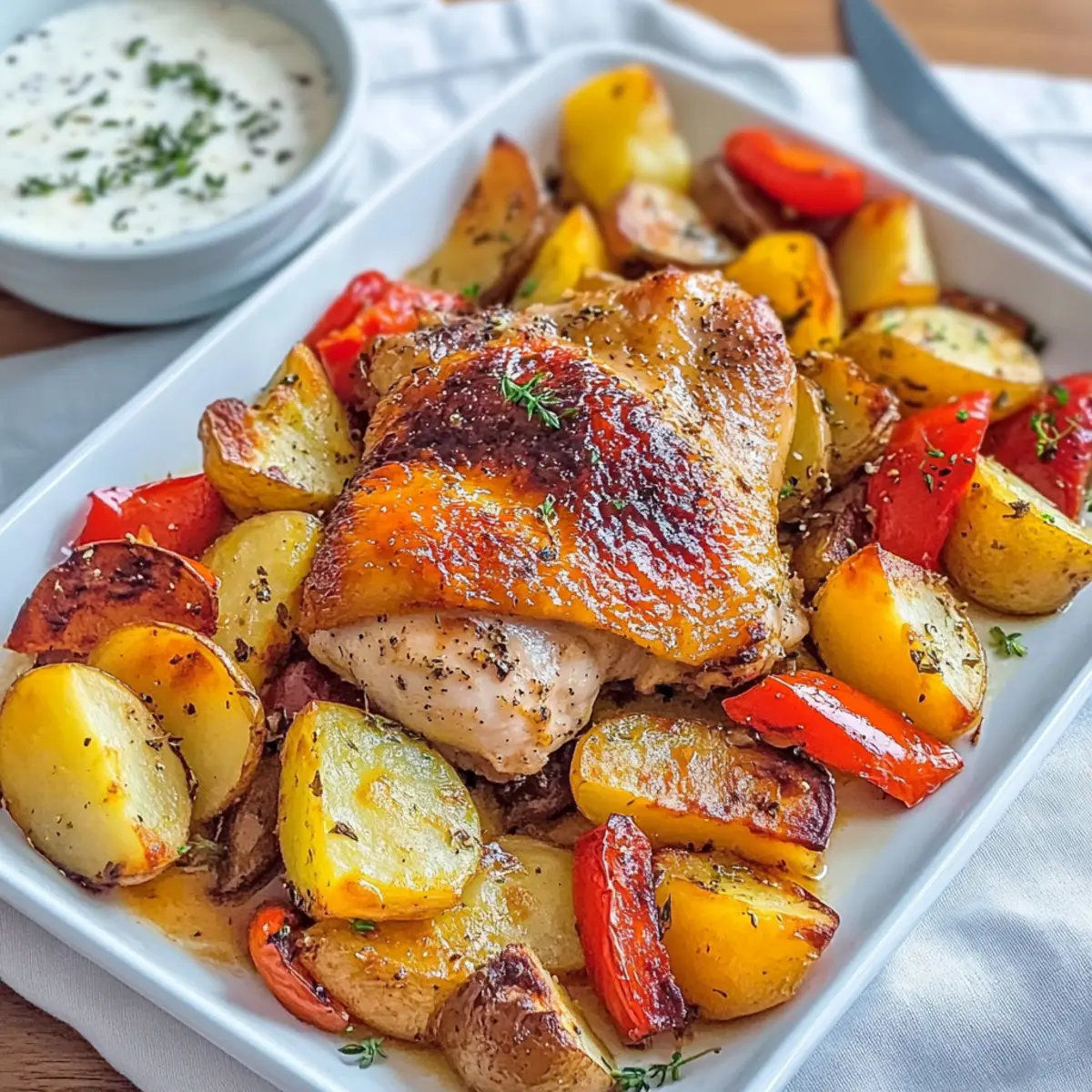 Hähnchenschenkel gebacken mit buntem Gemüse