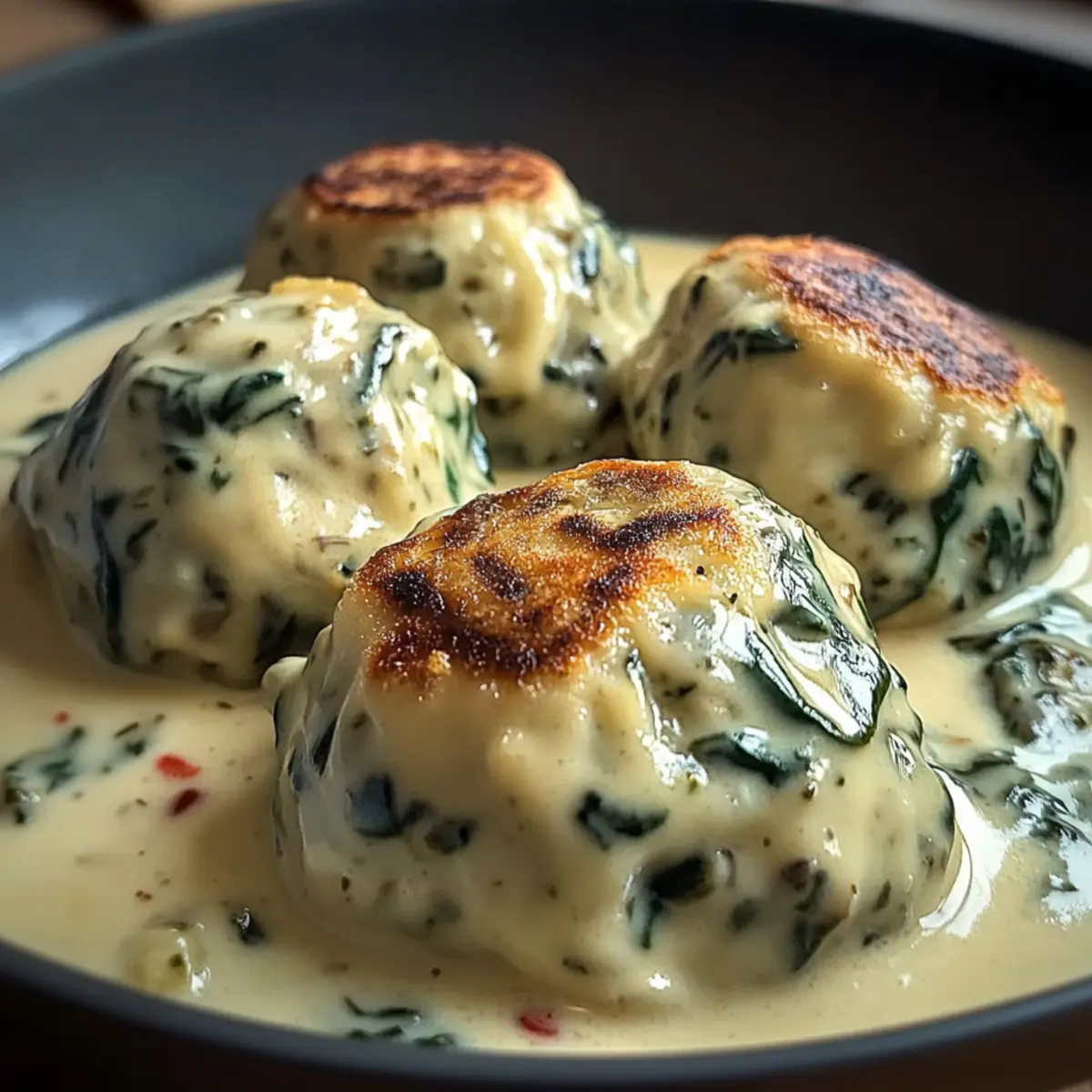 Suedtiroler Spinatknödel mit Pilzrahm genießen