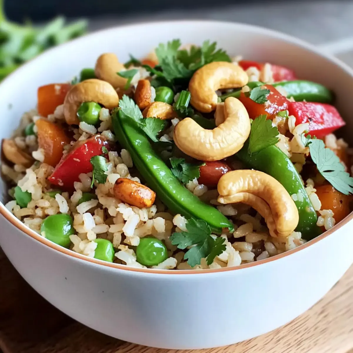 Leckere Basmati-Schüssel mit Gemüse und Cashews