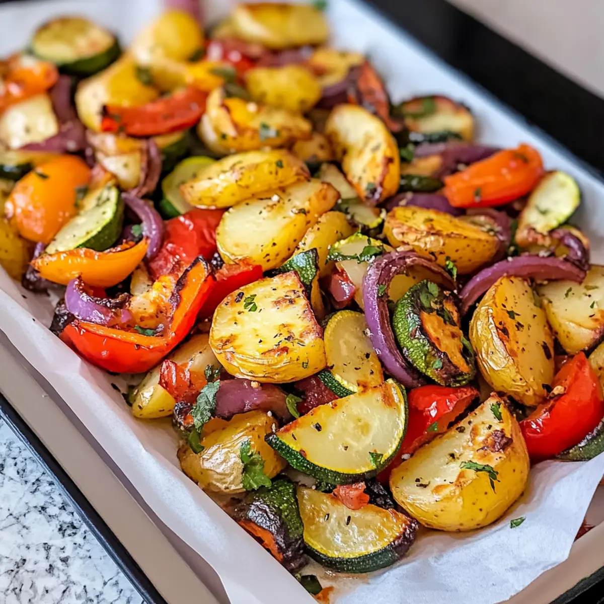 Geröstetes Gemüse mit Kartoffeln für glückliche Stunden