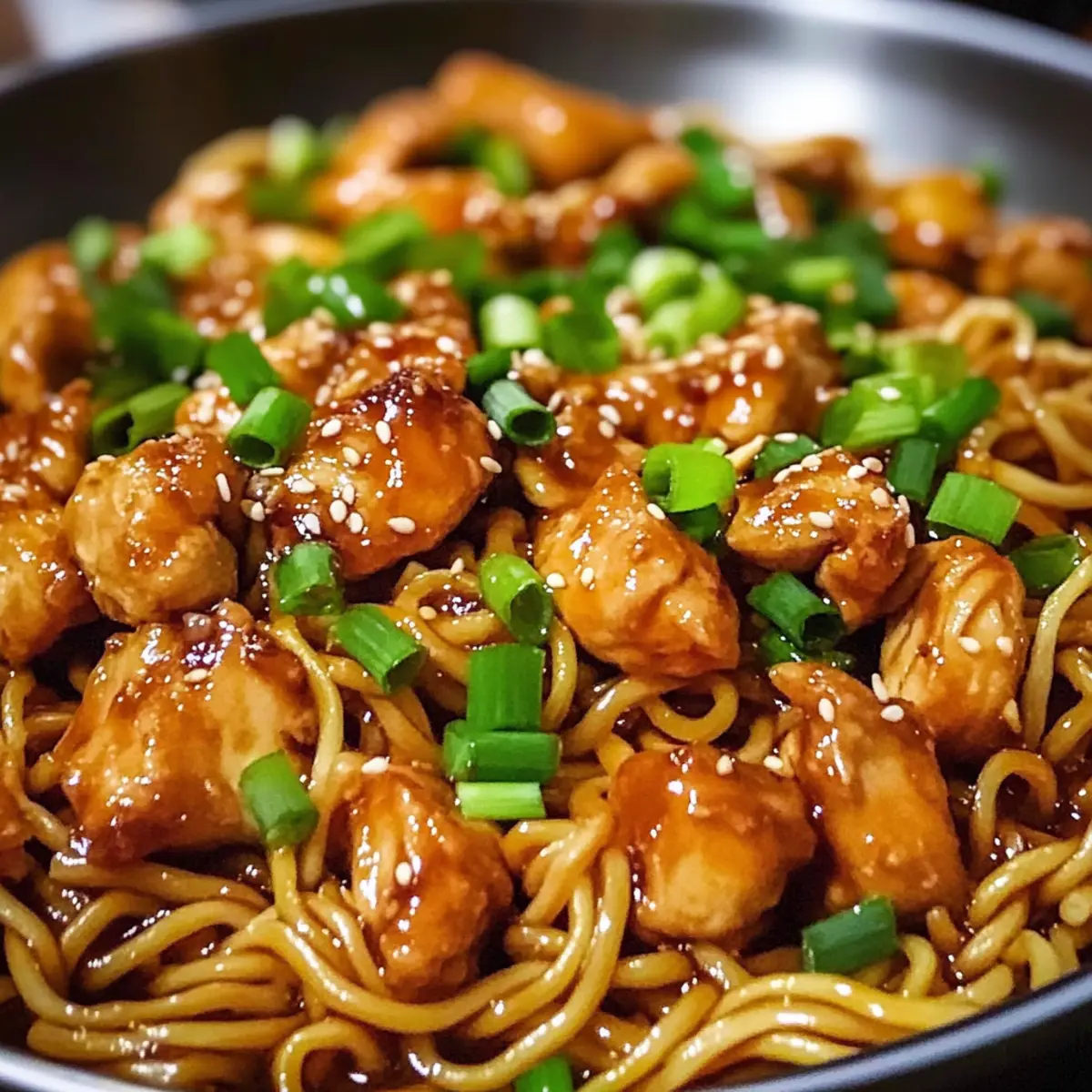 Klebrige Knoblauch-Hühnchen-Nudeln in 30 Minuten