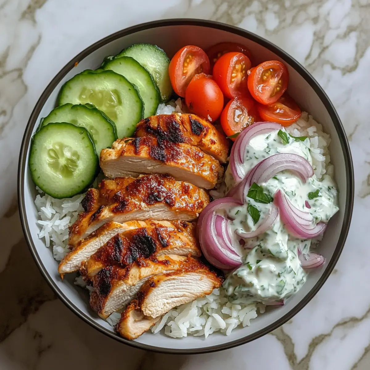 Hähnchen Shawarma Schalen mit cremigem Tzatziki