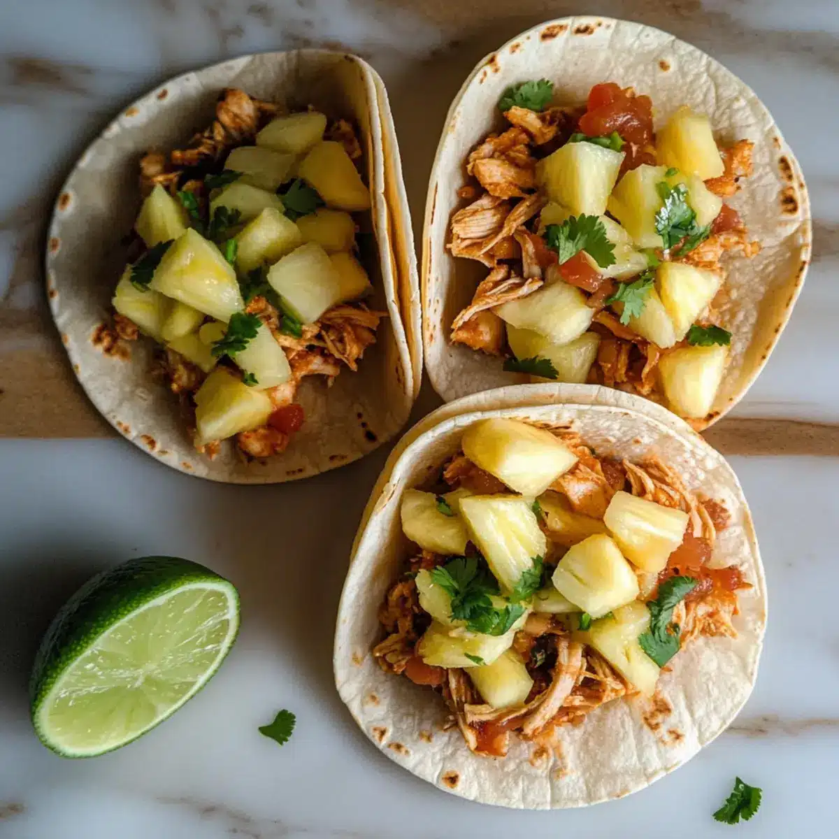 Hühnchen Tinga Tacos mit frischer Ananas-Salsa