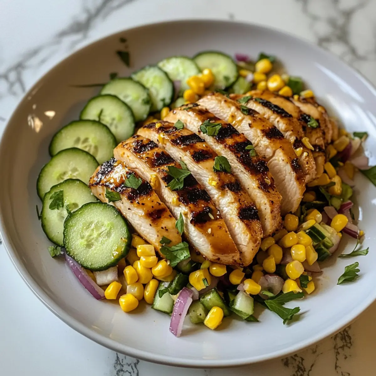 Honig-Senf gegrilltes Hähnchen mit erfrischendem Salat