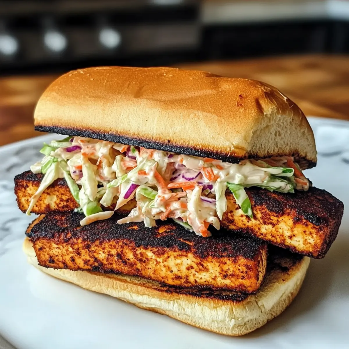 Schwarze Tofu-Sandwich mit Sriracha-Koleslaw