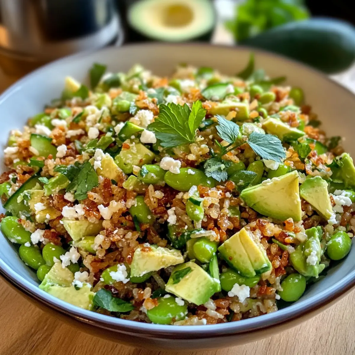 Knuspriger Reissalat mit Avocado für heiße Sommertage