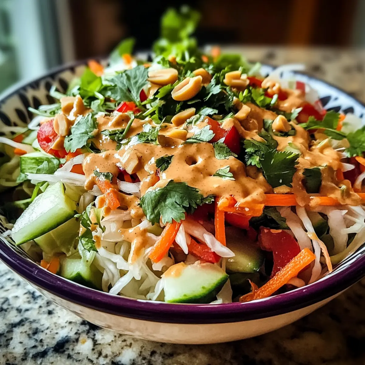 Frühlingsrollen-Salat mit Erdnussdressing frisch genießen