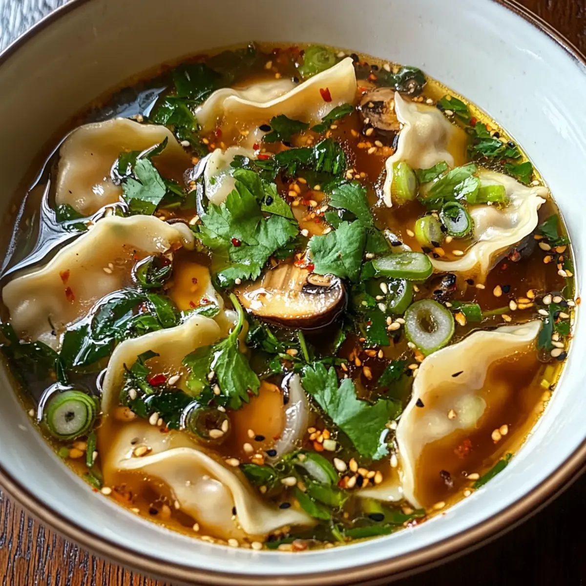 Herzhafte asiatische Teigtaschensuppe mit Ingwerbrühe