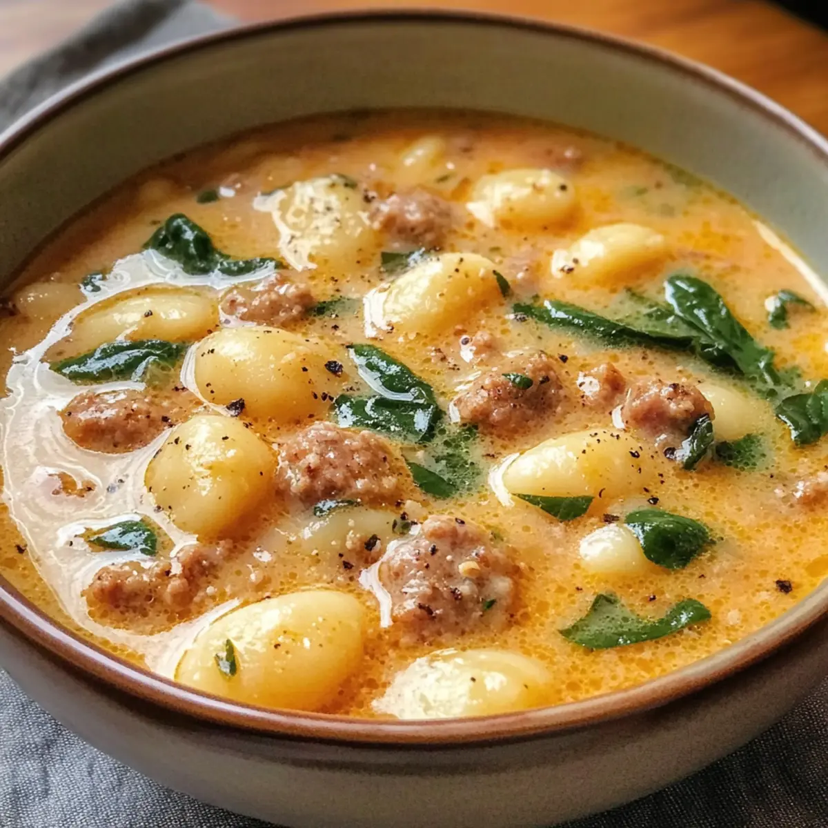Cremige italienische Würstchen Gnocchi Suppe genießen
