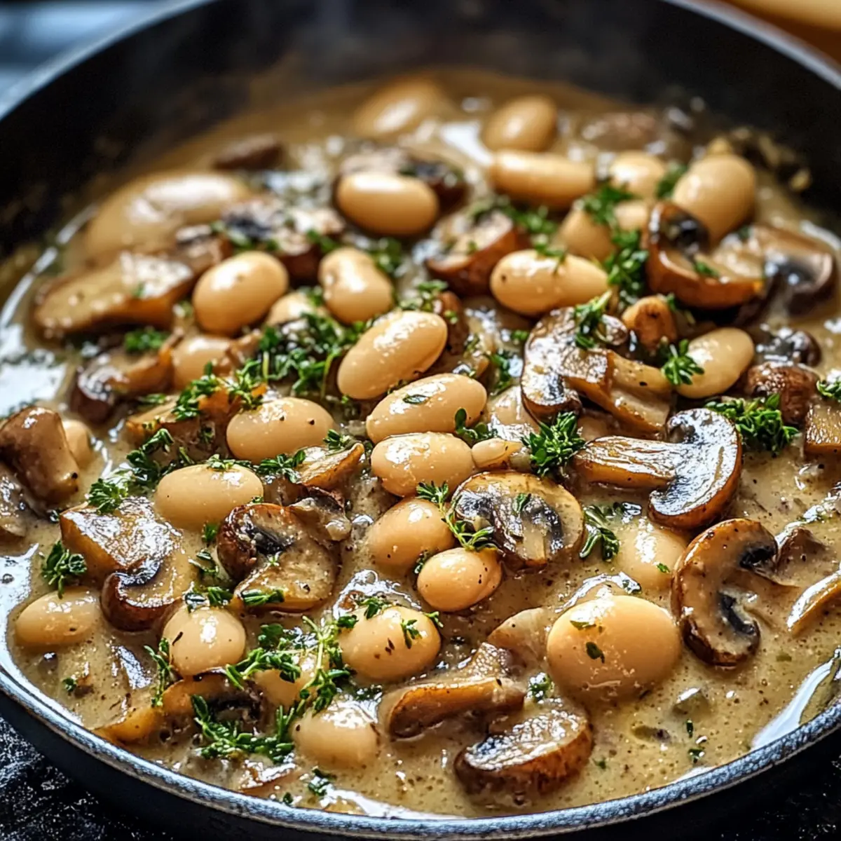 Aromatisch und cremig: Die Kombination aus frischen Pilzen und weißen Bohnen in einer reichhaltigen Soße macht das Gericht besonders schmackhaft.