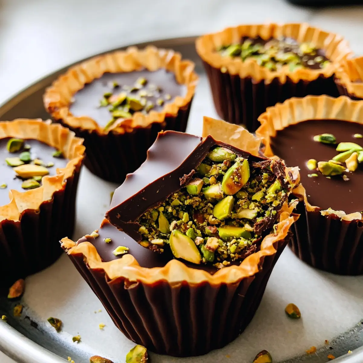 Die Vorbereitung dieser köstlichen Dubai Schokoladenbecher ist für vielbeschäftigte Köche ein wahrer Zeitgewinn! Sie können die Pistazien-Tahini-Füllung bis zu 3 Tage im Voraus zubereiten und im Kühlschrank aufbewahren, um den nussigen Geschmack zu bewahren. Außerdem lassen sich die Schokoladenschalen ebenfalls bis zu 24 Stunden im Voraus herstellen; stellen Sie sicher, dass diese gut ausgehärtet sind, bevor Sie die Füllung hinzufügen. Um die Qualität zu erhalten, lagern Sie die bereits gefüllten Schokoladenbecher in einem luftdichten Behälter im Kühlschrank und genießen Sie sie dann nach einer Kühlzeit von etwa 1 Stunde. Wenn es Zeit ist, sie zu servieren, drücken Sie vorsichtig auf die Silikonformen, um die Becher herauszulösen – so genießen Sie gleichbleibend delicious Schokoladenbecher ohne zusätzlichen Aufwand!