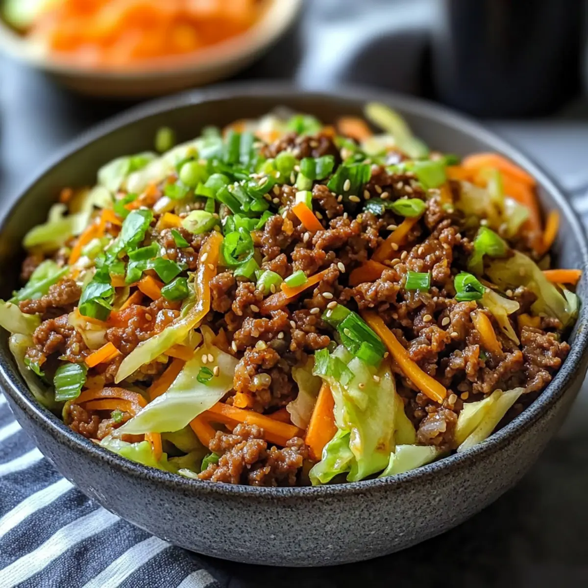 Diese Eierrolle in einer Schüssel ist perfekt für die Vorbereitung im Voraus und spart wertvolle Zeit an hektischen Abenden! Du kannst das Hackfleisch (1 lb) bis zu 24 Stunden vor der Zubereitung anbraten und im Kühlschrank aufbewahren. Ebenso lassen sich die Gemüse wie Zwiebeln, Karotten und der Kohl (3 Tassen) bereits schneiden und in einem luftdicht verschlossenen Behälter bis zu 3 Tage frisch halten. Stelle sicher, dass alles gut verpackt ist, um das Qualitätsverhalten zu bewahren und ein Verfärben zu verhindern. Wenn du bereit bist zu servieren, erhitze einfach die vorgegarte Mischung in einer Pfanne, füge die restlichen Zutaten wie Sojasauce und Gewürze hinzu und koche alles zusammen, um eine köstliche, frisch zubereitete Mahlzeit zu genießen.