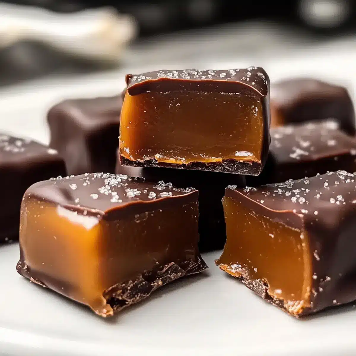 - Salzig und süß: Füge vor dem Schokoladenüberzug eine Prise Meersalz hinzu. Der Kontrast verstärkt das Geschmackserlebnis und macht die Karamellen noch verlockender!