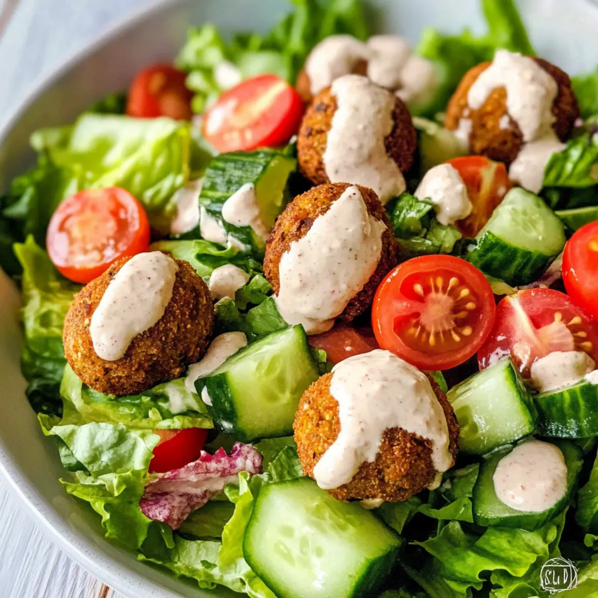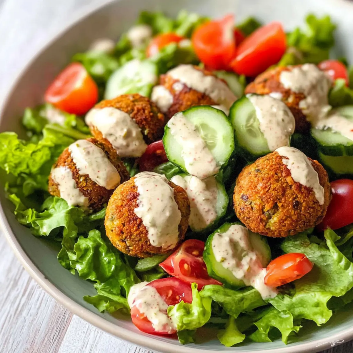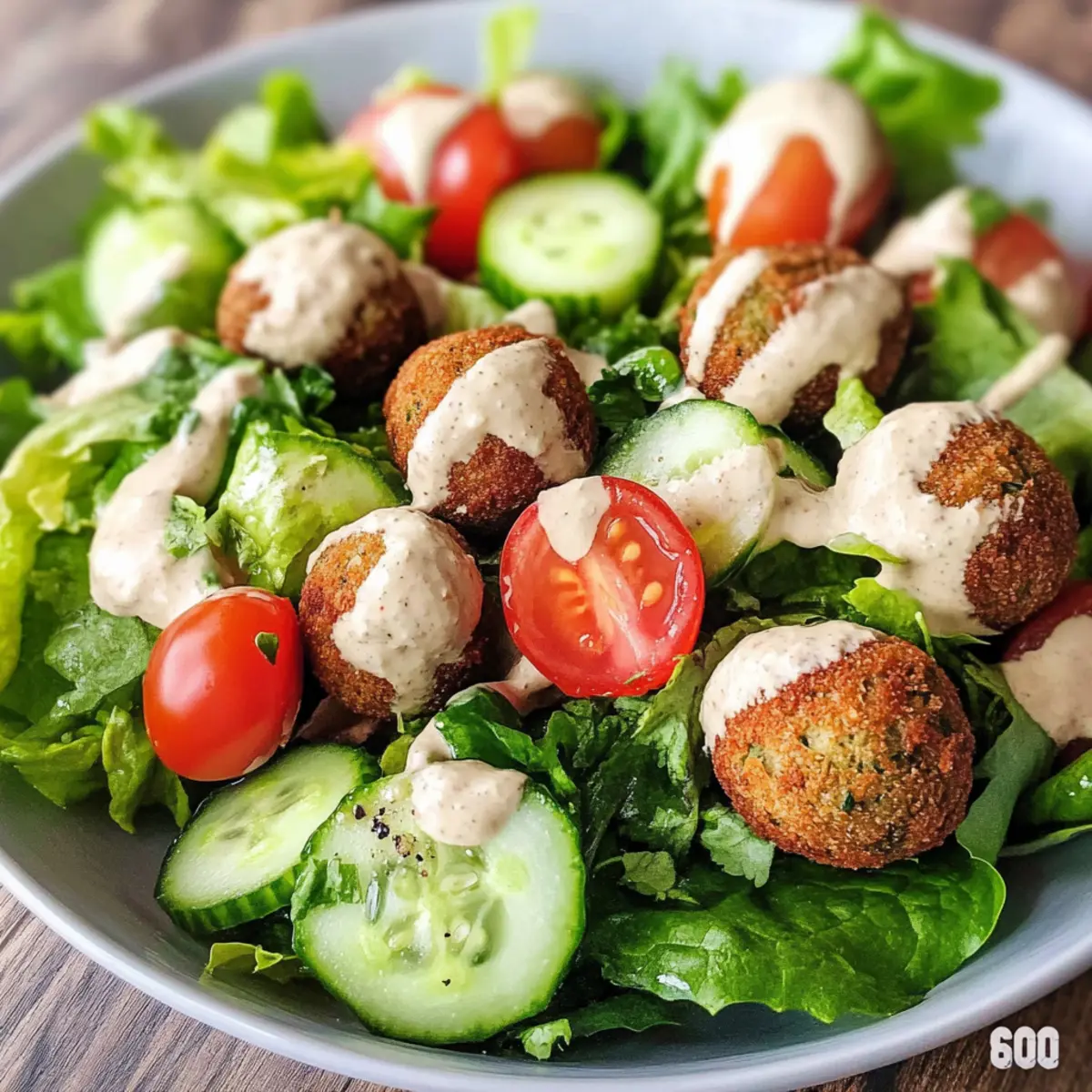 Veganer Falafel Salat mit schnellem Hummus-Dressing