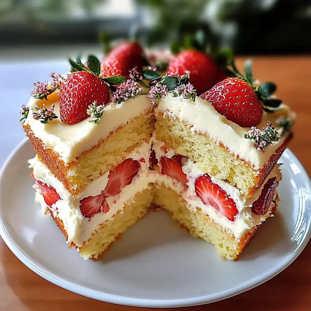 Erdbeere Olivenöl Kuchen mit Zitronenverbene Buttercreme