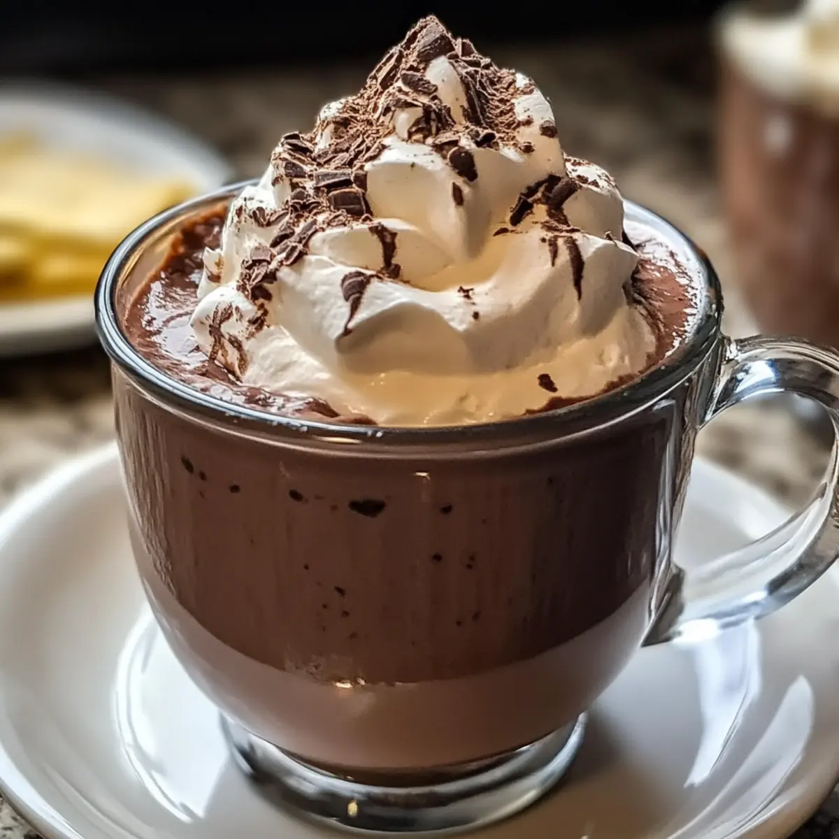 Gieße die fertige französische heiße Schokolade in gemütliche Tassen und garniere sie nach Belieben mit Schlagsahne oder Mini-Marshmallows. Serviere die heiße Schokolade sofort, damit jeder Schluck die warme Umarmung des schokoladigen Komforts spüren kann, genau das, was man an kalten Tagen braucht.