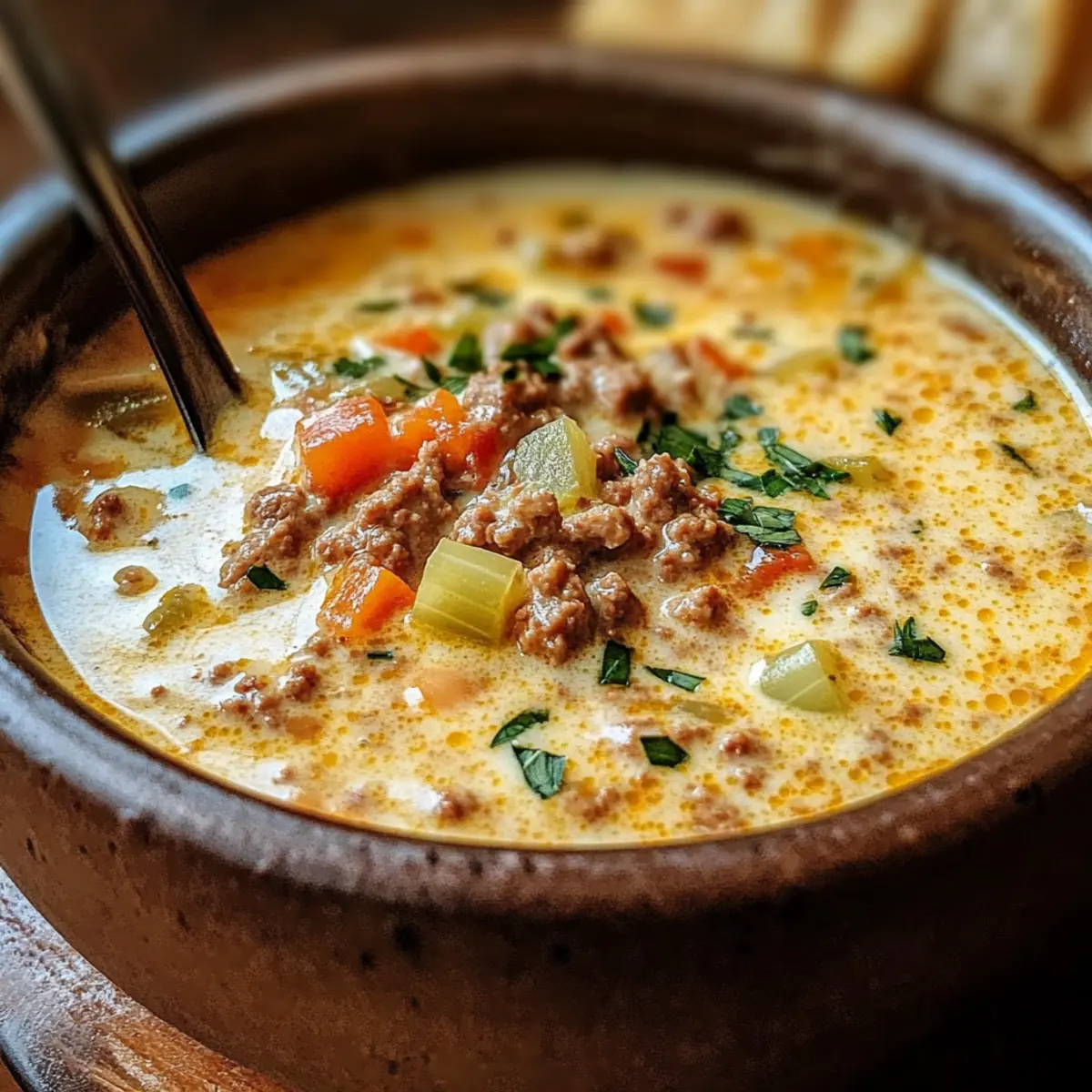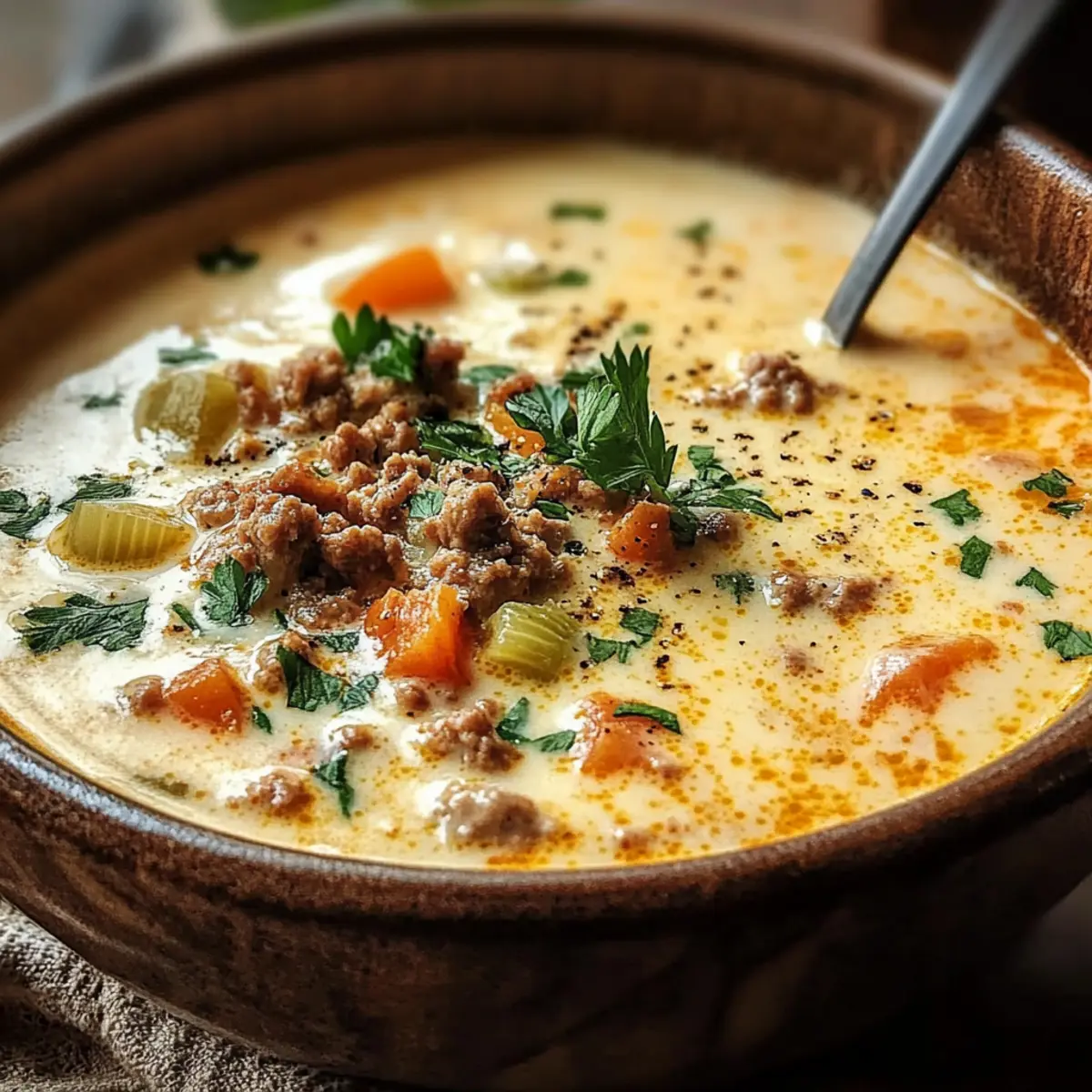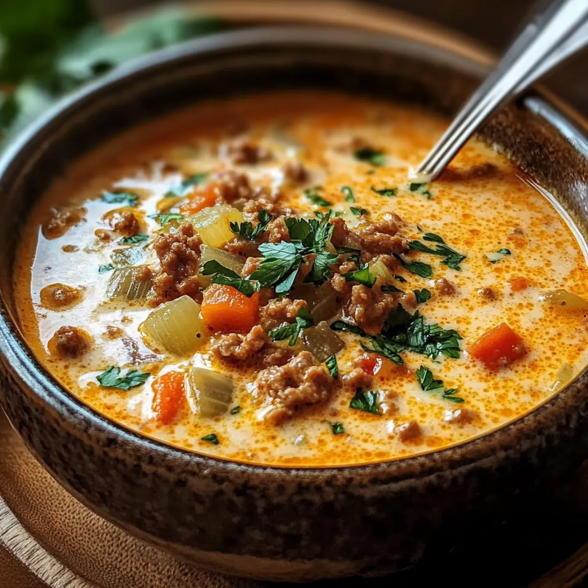Die Friss-dich-dumm-Suppe ist ideal für die Vorbereitung, um dir Zeit während hektischer Wochentage zu sparen! Du kannst das Hackfleisch bereits bis zu 3 Tage im Voraus anbraten und im Kühlschrank aufbewahren; das0 wird die Aromen intensivieren. Auch das Gemüse kann gewaschen und geschnitten bis zu 24 Stunden im Voraus vorbereitet werden, um die Zubereitungszeit zu minimieren. Wenn du die Suppe am gewünschten Tag zubereitest, erhitze einfach das Hackfleisch und die Gemüsebrühe, füge die Sahne und den Schmelzkäse hinzu und koche alles zusammen für eine cremige Köstlichkeit. Diese Schritte helfen, die Qualität der Suppe zu bewahren, sodass sie genauso lecker bleibt, selbst wenn sie am nächsten Tag aufgewärmt wird!