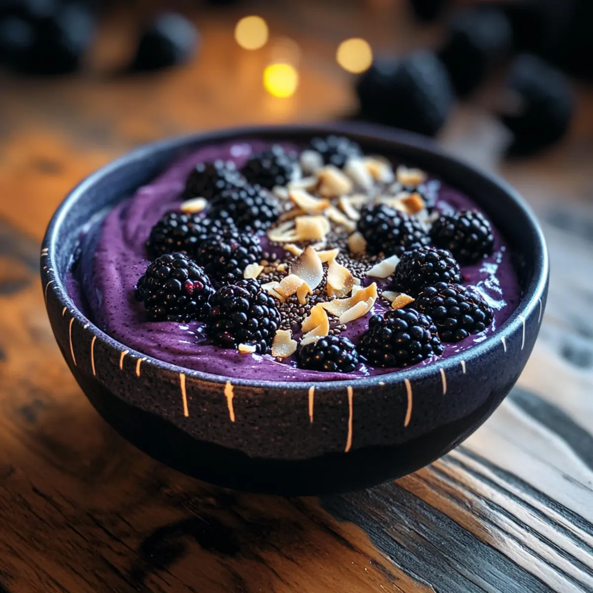 Streue die frischen Brombeeren gleichmäßig über die Oberfläche deiner Smoothie-Basis, um Farbe und Frische hinzuzufügen. Anschließend kannst du die geröstete Kokosnuss vorsichtig darüber streuen. Dies bringt nicht nur zusätzlichen Crunch, sondern verbessert auch den Geschmack, was deine Gespenstische Smoothie-Schüssel zu einem wahren Augenschmaus macht.