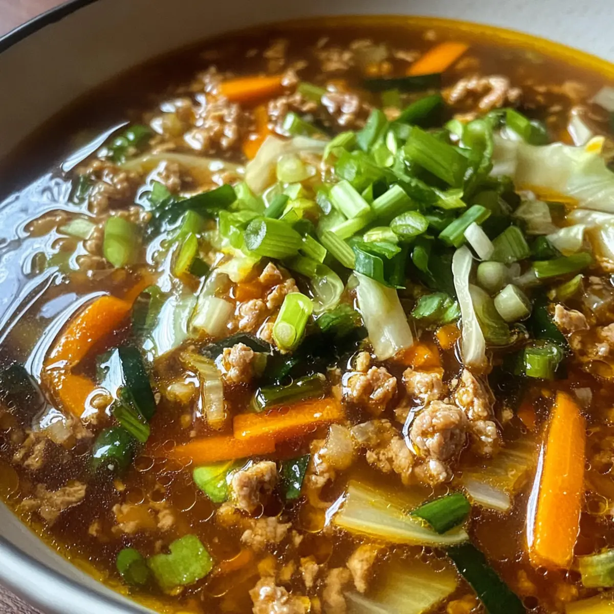 Es war einer dieser Tage, an denen sich der Wind kühl und leise durch das offene Fenster schlich, während ich mich nach etwas Warmem und Herzhaftem sehnte. Genau in solchen Momenten zaubere ich gerne meine Gesundes Eierrolle Suppe. Dieses Rezept bringt die köstlichen Aromen traditioneller Eierrollen in einer gesunden, schnell zubereiteten Suppe zusammen, die in nur 40 Minuten auf dem Tisch steht. Mit frischen Gemüse und aromatischem Brühe ist sie nicht nur leicht und kalorienarm, sondern auch perfekt für hektische Wochentage. Wenn du auf der Suche nach einem Gericht bist, das sowohl nährt als auch erfreut, ist diese Suppe genau das Richtige. Bist du bereit, deine Geschmacksknospen zu verwöhnen?