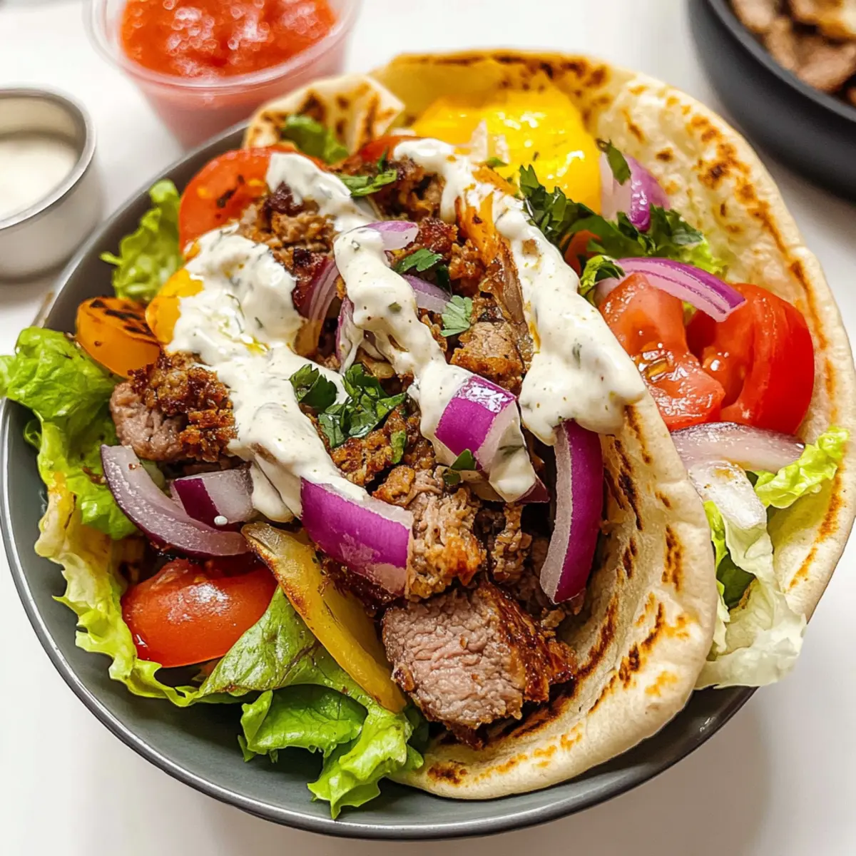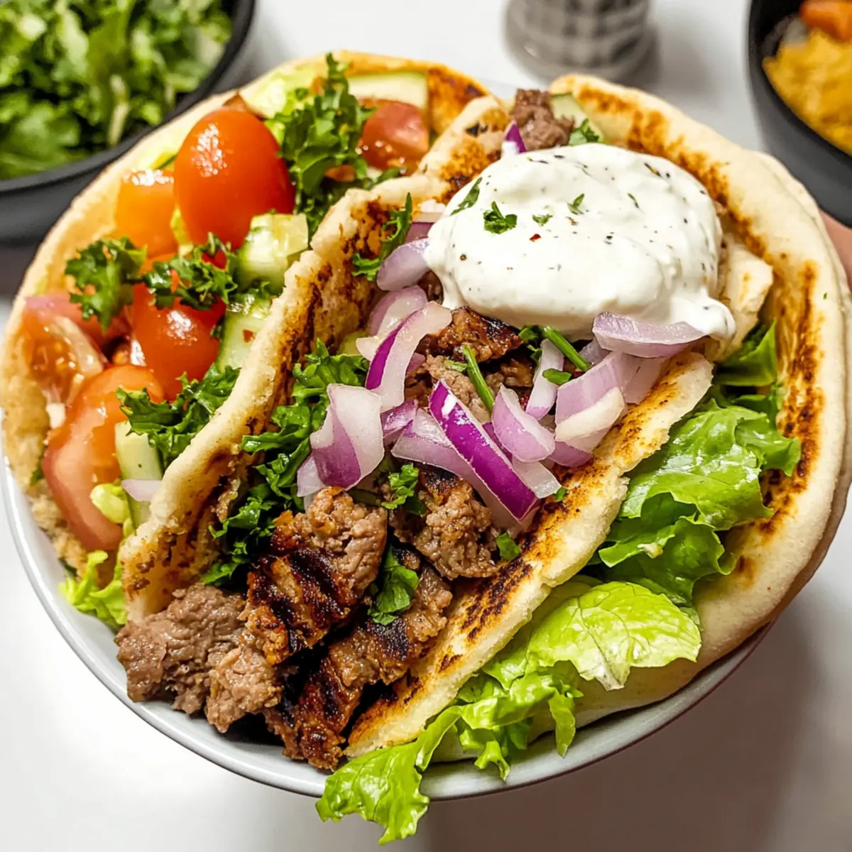 Glutenfrei: Wähle glutenfreies Pita-Brot oder serviere das Fleisch als Schüsselgericht mit Gemüse und Beilagen für ein perfektes glutenfreies Abendessen.