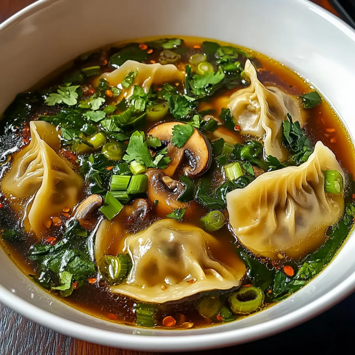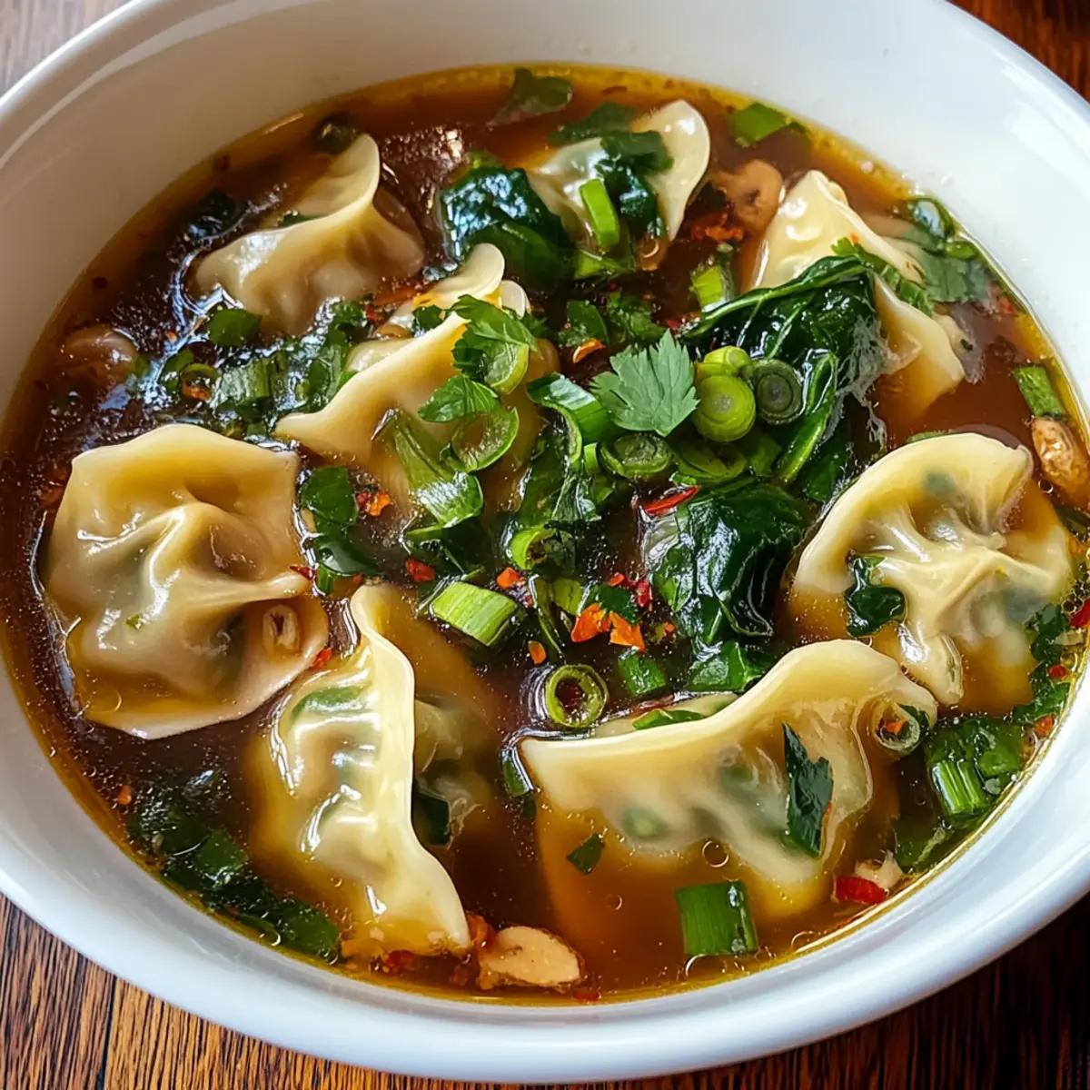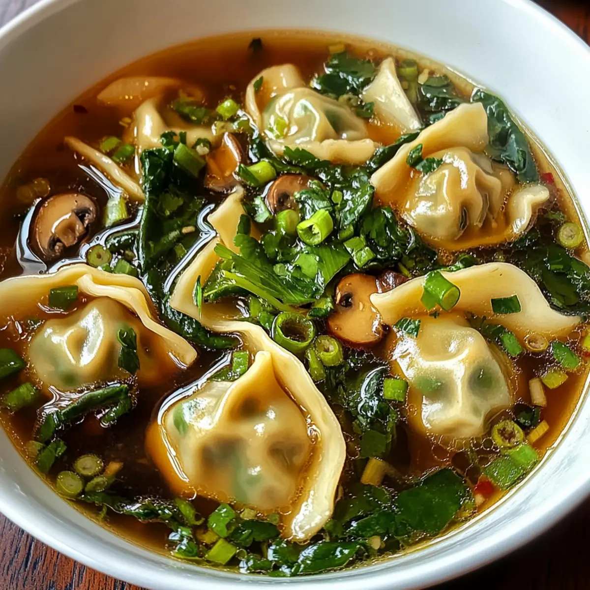 Herzhafte asiatische Teigtaschensuppe mit Ingwerbrühe