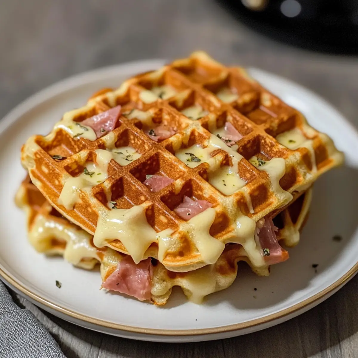 Vielseitige Fülloptionen: Ob mit Schinken, Salami oder veganen Gemüsefüllungen, du kannst die Waffeln ganz nach deinem Geschmack gestalten.
