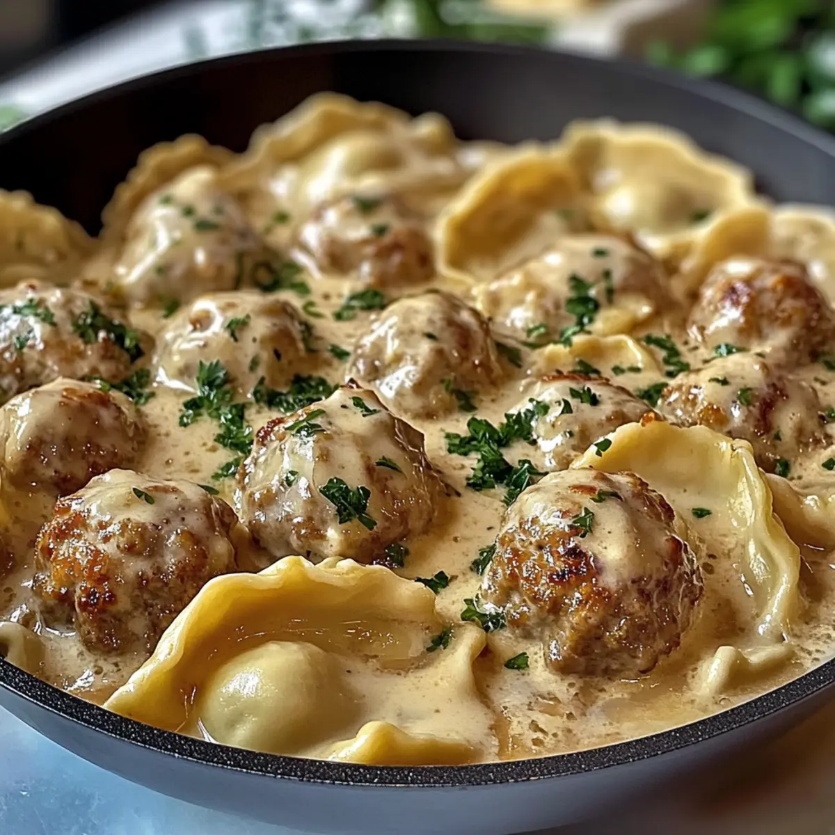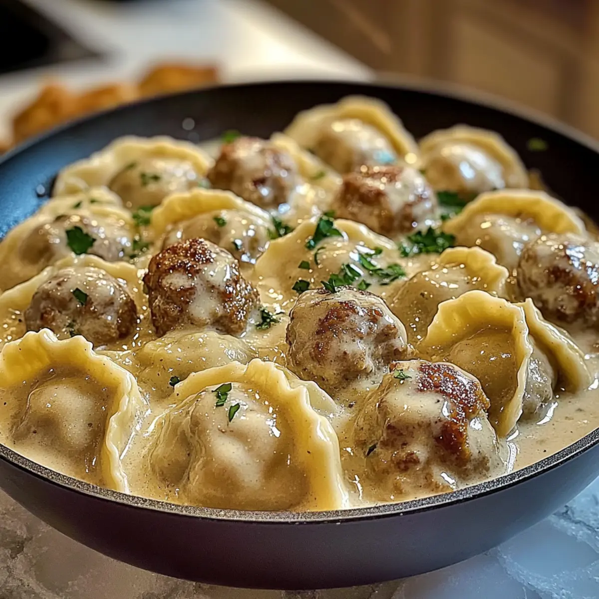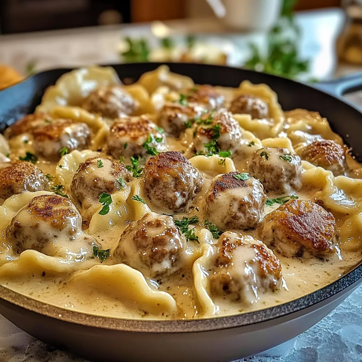Herzhafter Pierogi und Fleischbällchen Pfanne für echte Genießer