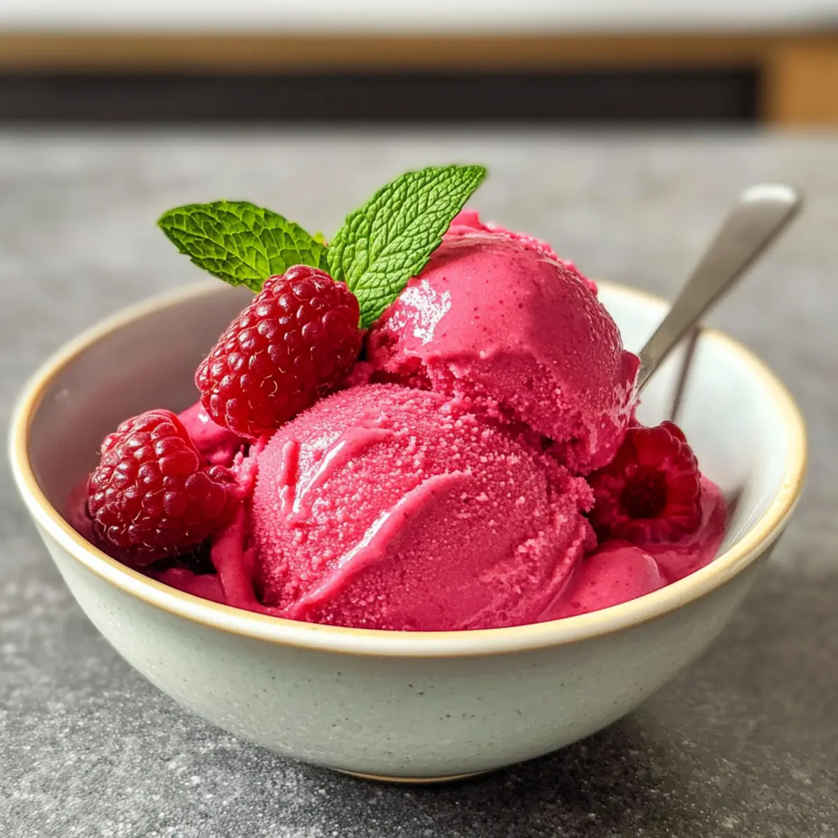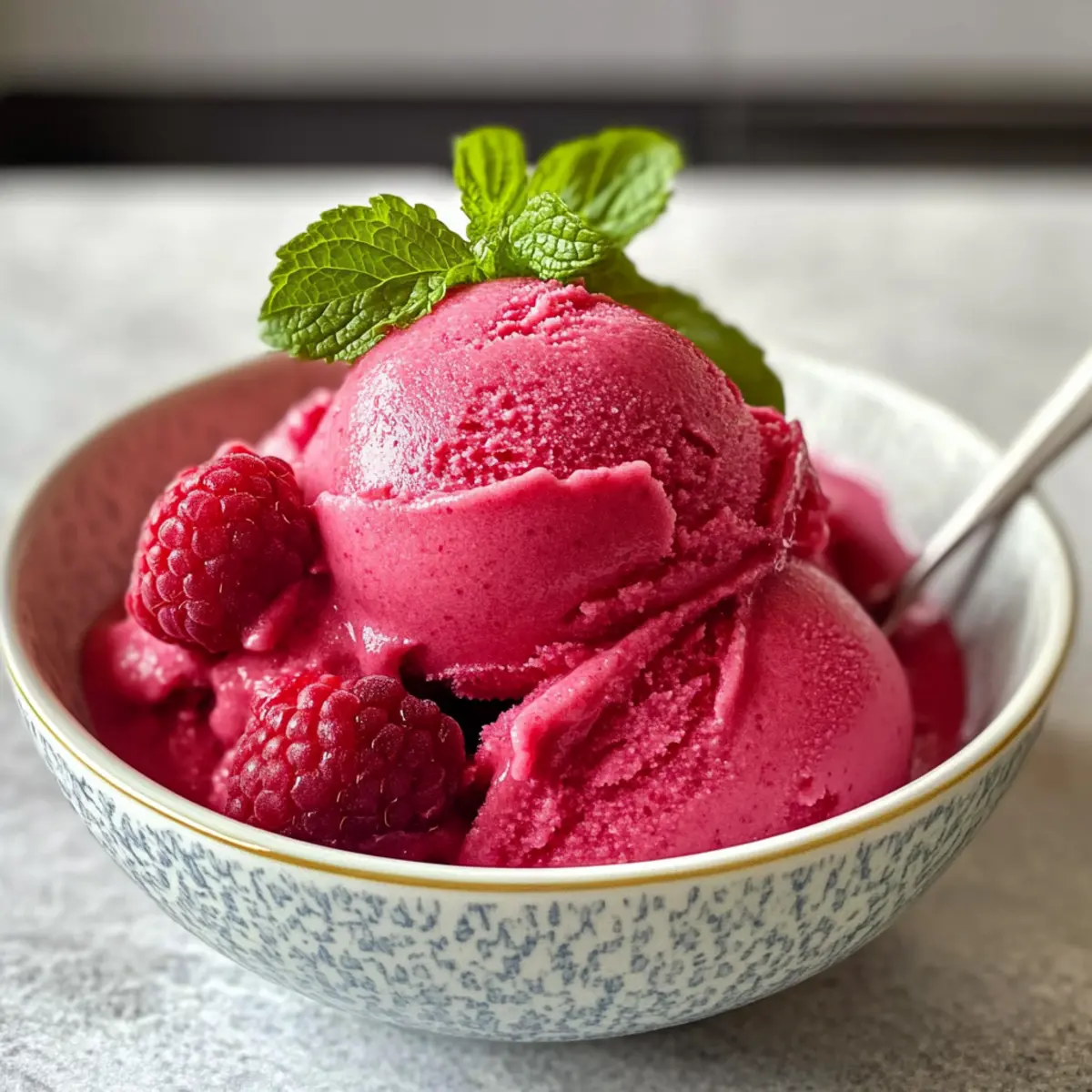 Himbeer-Minz-Kick: Vermengen Sie frische Minzblätter in die Himbeermischung, bevor Sie sie pürieren. So verleihen Sie dem Sorbet ein erfrischendes Aroma, das perfekt für heiße Sommertage ist.