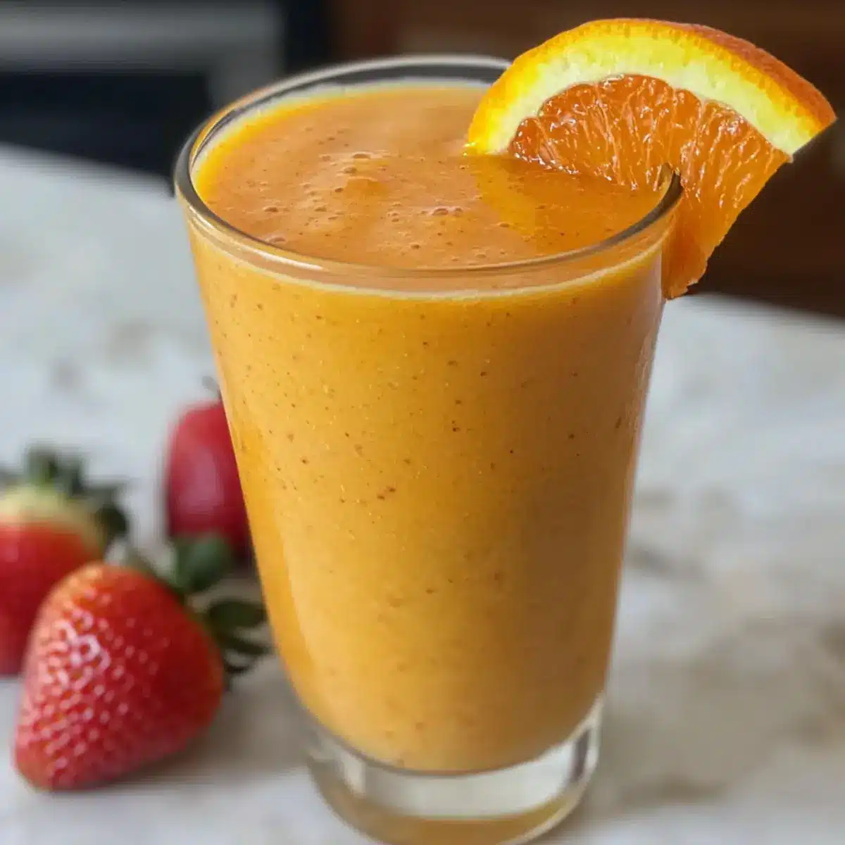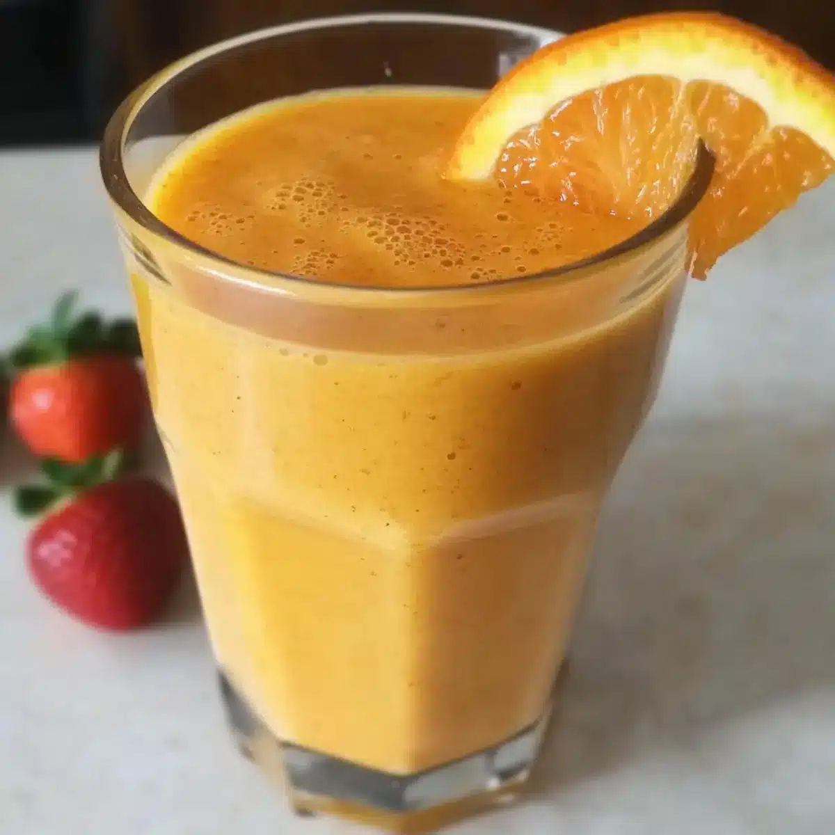 Wusstest du, dass ein einfacher Smoothie der Schlüssel zu einem stärkeren Immunsystem sein kann? Genau das ist der Grund, warum ich diesen Immun-Power-Smoothie mit Ingwer und Kurkuma liebe. Die harmonische Kombination aus spritziger Orange, saftigem Mangos und süßen Erdbeeren sorgt nicht nur für einen erfrischenden Genuss, sondern auch für einen echten Vitamin-Kick. Dieser Smoothie ist nicht nur vegan und detox-freundlich, sondern auch blitzschnell zubereitet – perfekt für alle, die sich von Fast Food verabschieden möchten. Mit seinen entzündungshemmenden Zutaten ist er ein echtes Geheimrezept für die kalte Jahreszeit. Bist du bereit, deinem Immunsystem etwas Gutes zu tun? Dann lass uns gleich mit dem Mixen beginnen!