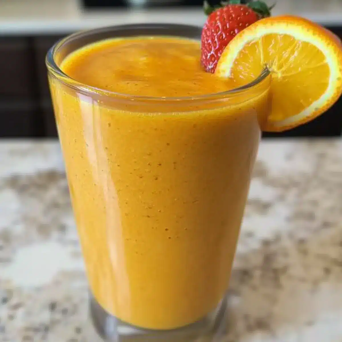 Verrühre die Zutaten im Mixer bei hoher Geschwindigkeit für etwa 30 bis 60 Sekunden, bis eine glatte und cremige Konsistenz erreicht ist. Achte darauf, dass keine Klumpen mehr vorhanden sind, und halte an, wenn der Smoothie eine leuchtende orange-gelbe Farbe annimmt. Ein leistungsstarker Mixer sorgt für eine besonders feine Textur und ein tolles Geschmackserlebnis.