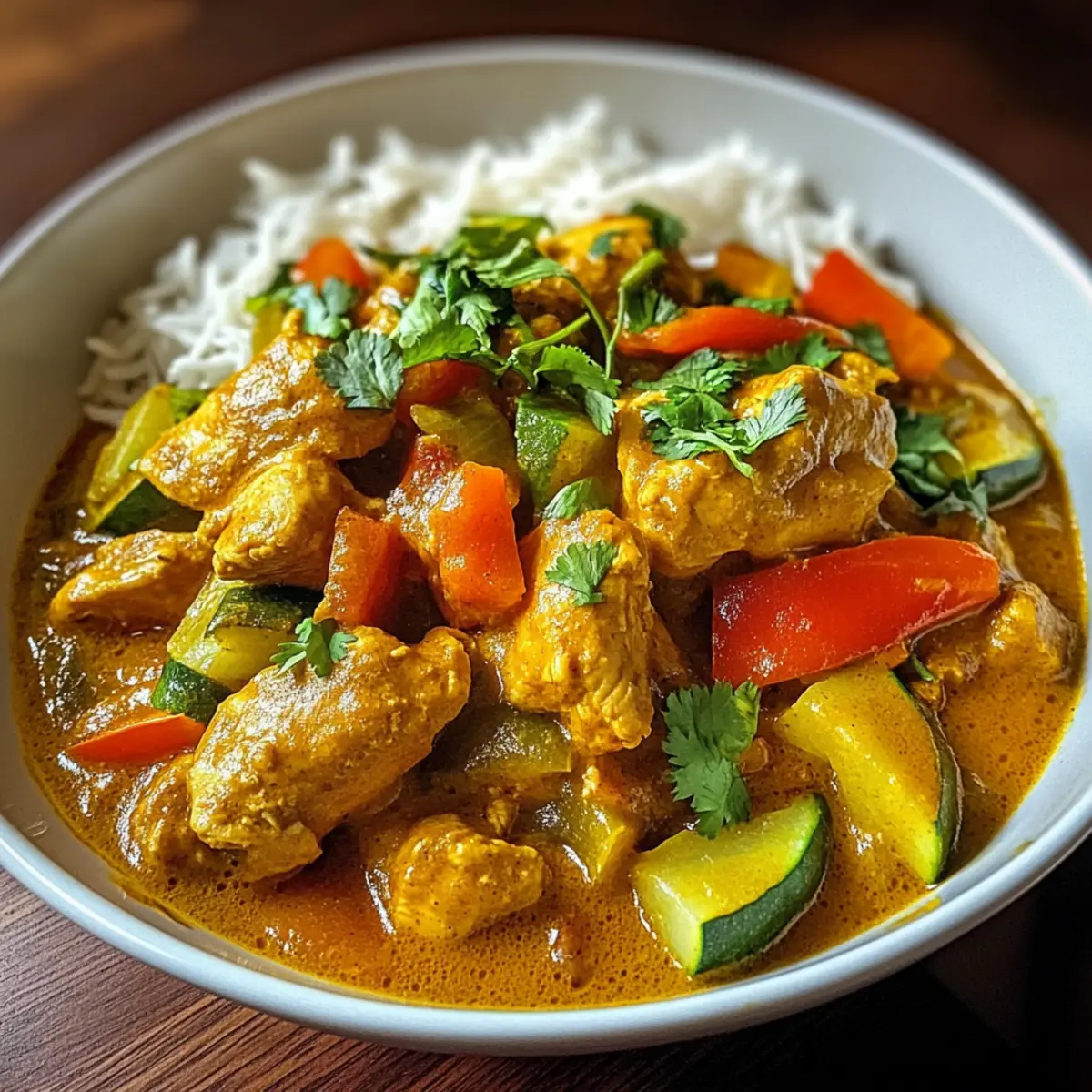 Die würzige Aroma-Explosion des Indischen Hähnchen Currys wird selbst die einfachsten Dinner-Abende in ein Fest aufdecken. Zarte Hähnchenbrust trifft auf eine harmonische Mischung aus exotischen Gewürzen und cremiger Kokosmilch, während frisches Gemüse eine schöne Farbpracht hinzufügt. Dieses Gericht ist nicht nur unglaublich lecker, sondern auch kinderfreundlich und schnell zuzubereiten – perfekt für hektische Wochentage oder gesellige Abende mit der Familie. Außerdem kann jeder seine persönliche Note einbringen, sei es durch eine vegetarische Variante mit Kichererbsen oder durch den Austausch von Hähnchen mit Garnelen. Neugierig, wie einfach es ist, dieses geschmackliche Abenteuer direkt in Ihrer Küche zu kreieren?