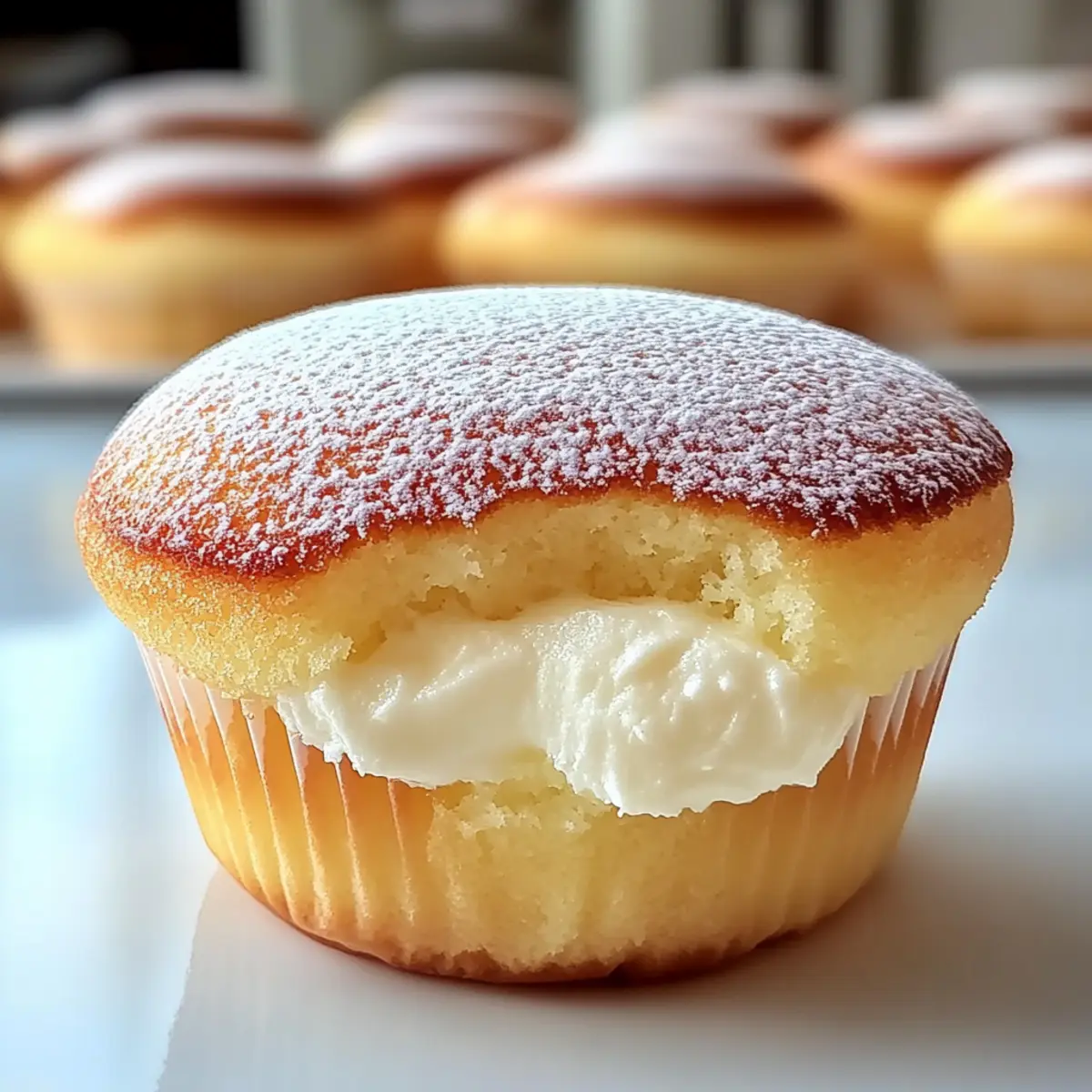 Himmlische Textur: Die Japanischen Baumwollkäsekuchen-Muffins sind leicht und luftig, eine perfekte Kombination aus Soufflé und Käsekuchen.