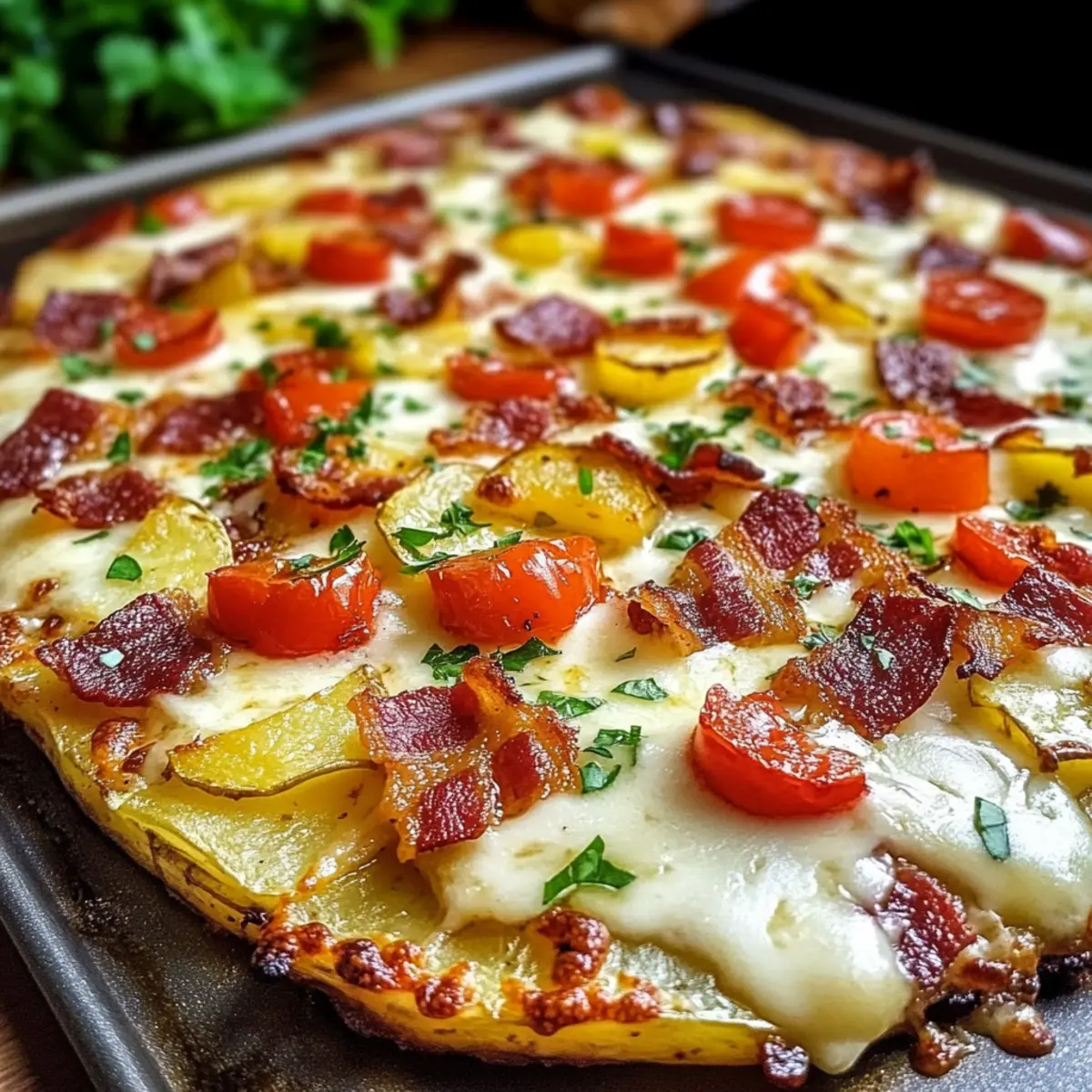 Einzigartiger Geschmack: Kartoffelpizza vereint die besten Elemente von Pizza und Kartoffeln. Der goldene, knusprige Boden sorgt für eine überraschend leckere Basis.