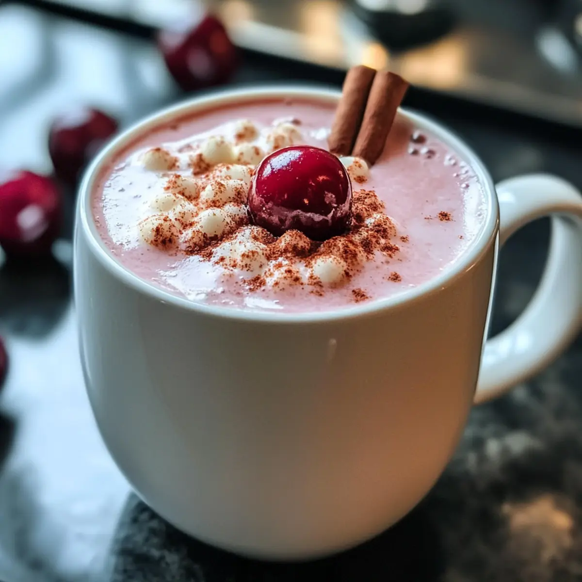 - Dekoriere mit Schlagsahne, frischer Kirsche und Zimt nach Belieben.