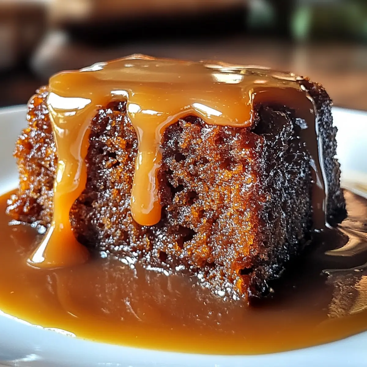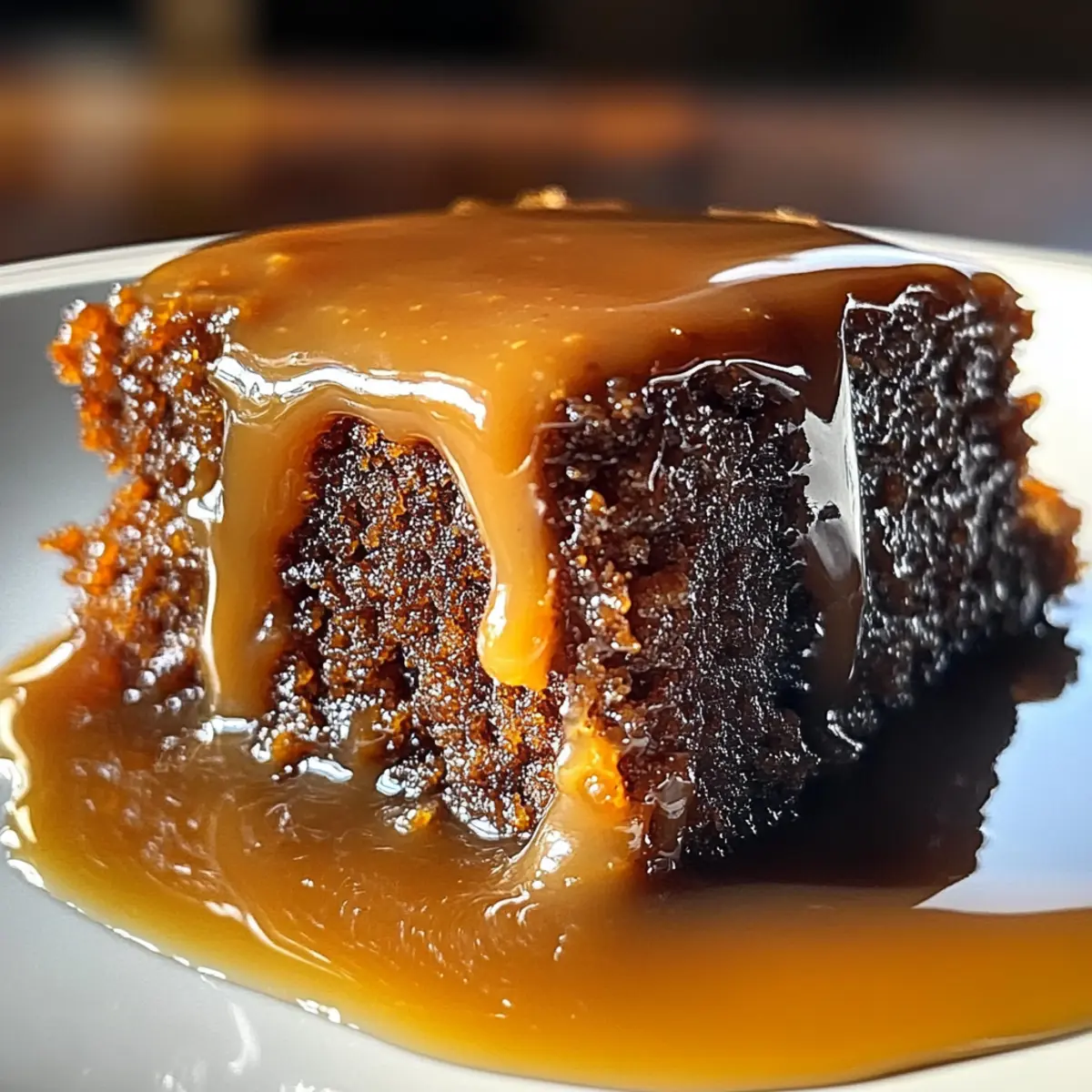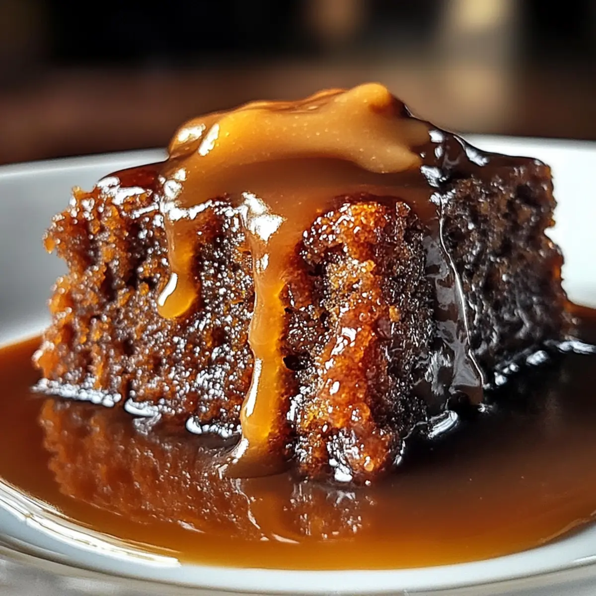 - Serviert den Klassischen Klebrigen Dauerpudding warm, großzügig mit der Karamellsauce übergossen.