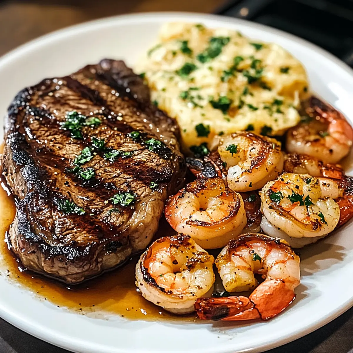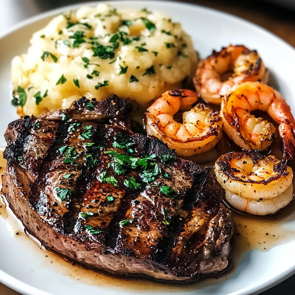Zitronenfrische: Füge einen Spritzer frischer Zitrone über Steak und Garnelen kurz vor dem Servieren hinzu, um die Aromen aufzuhellen.